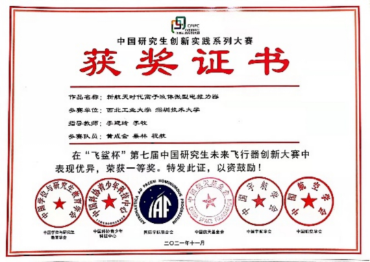 [1]2021.11: 获中国研究生未来飞行器创新大赛全国一等奖(排名1);