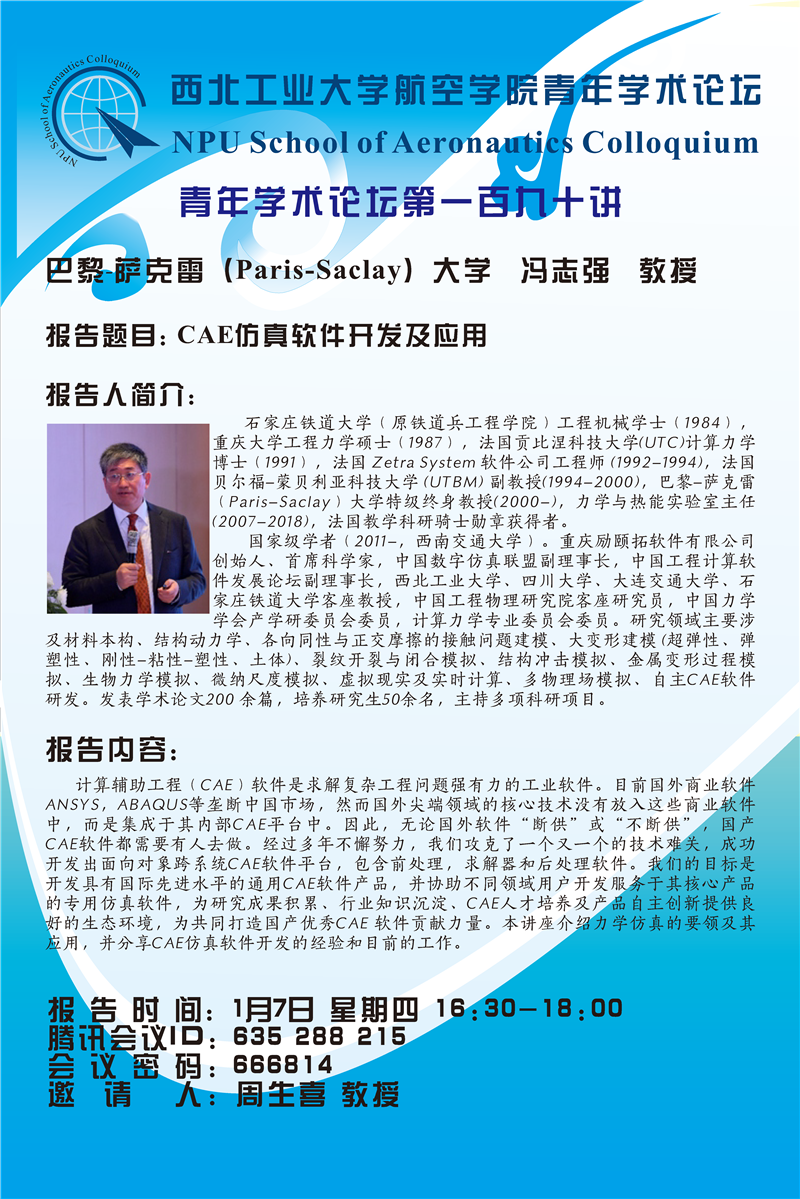 【学术报告】青年学术论坛第190讲 (法国巴黎萨克雷大学 冯志强教授)
