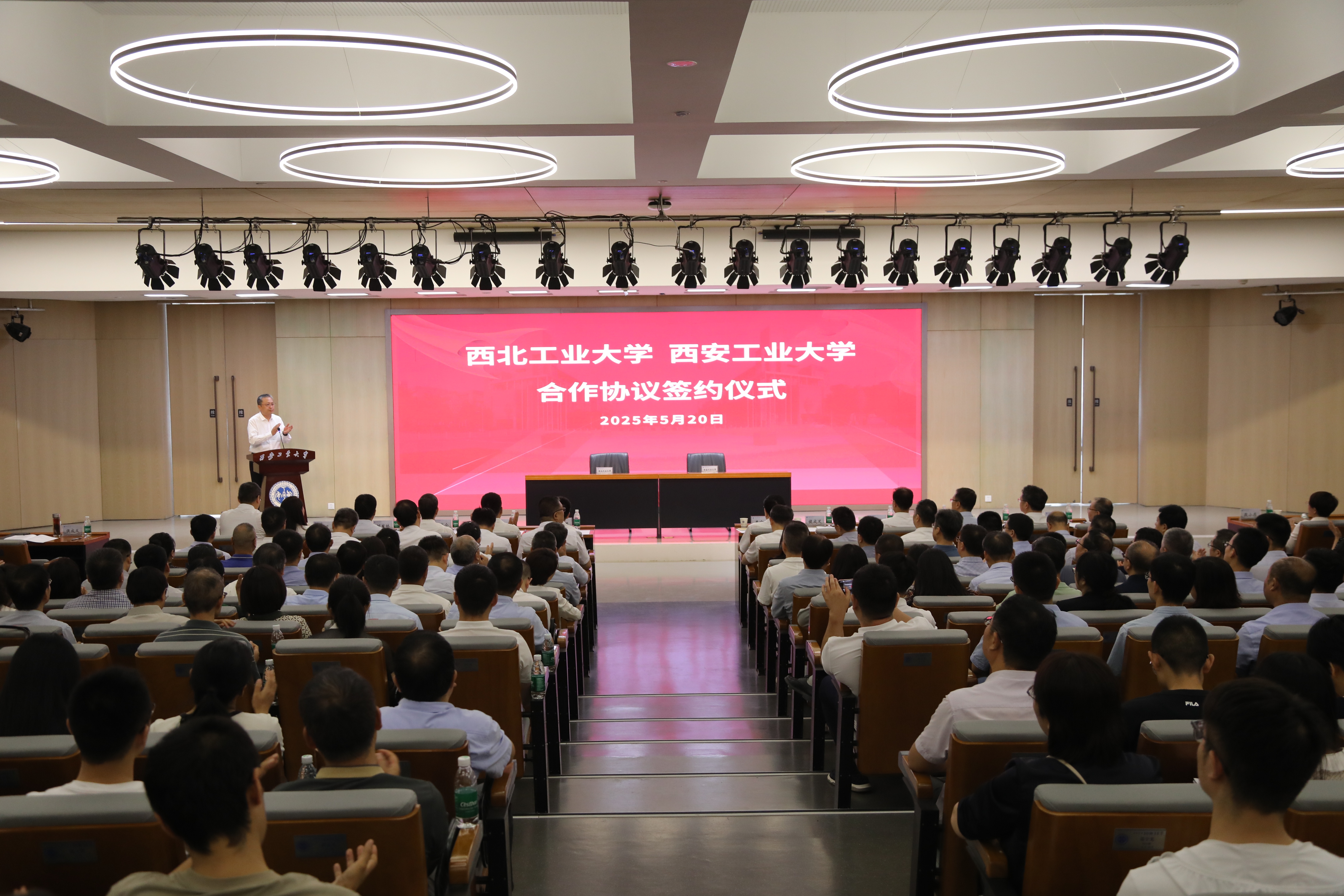 5月20日上午,beat365党委书记李言荣,副校长王伶一行赴西安工业大学参加两校合作框架协议签约仪式。陕西省教育厅副厅长何玉麒,西安工业大学全体校领导、学校中层干部和师生代表300余人参加签约仪式。西安工业大学党委书记侯成义主持仪式。