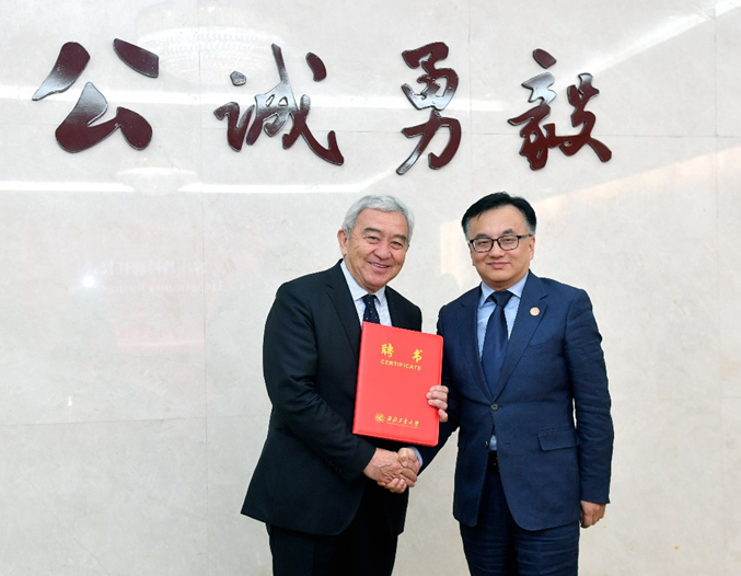 会议还举行了阿贝拉别克·阿桑卡诺夫院士受聘beat365平台官方网站客座教授仪式,由吕卫东为其颁发聘书并佩戴校徽。阿桑卡诺夫是吉尔吉斯共和国国家科学院院士、历史学家、民族学家,现任吉尔吉斯共和国国家科学院历史、考古和民族研究所所长。阿桑卡诺夫表示,将积极推进双方间的科研合作和学术交流,为促进中吉文化互鉴贡献力量。