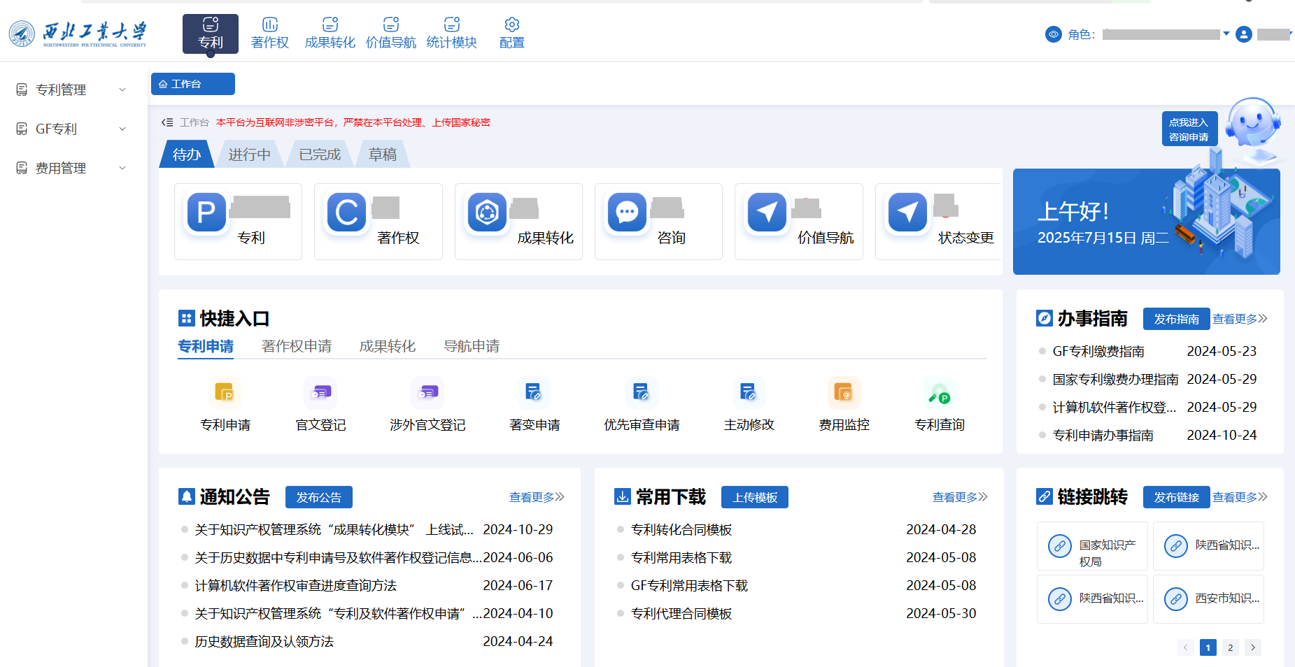 三、提高师生申请知识产权质效,加快培育高价值专利。国家大学科技园更新知识产权全生命周期管理平台,实现知识产权、成果转化业务“一网通办”,极大节约师生办事时间。制定《专利申请前评估实施细则》,提升专利质量和授权率,上半年专利授权率超80%,是全国平均水平的2倍以上。通过专利导航创造了一批高价值专利组合。专利转化应用典型经验做法入选知识产权强国建设典型案例、国知局专利转化运用优秀案例、省专利产业化优秀案例、省科技金融典型案例。