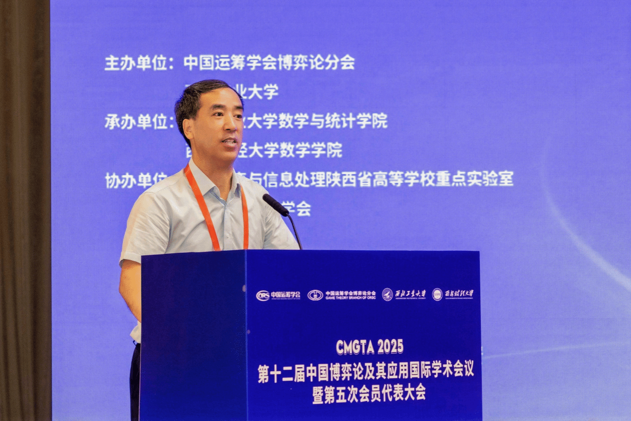 第十二届中国博弈论及其应用国际学术会议(12th China Meeting on Game Theory and Its Applications—CMGTA’2025)暨第五次会员代表大会于2025年8月25-27日在陕西宾馆顺利召开。会议由中国运筹学会博弈论分会和beat365平台官方网站联合主办,beat365平台官方网站数学与统计学院、西安财经大学数学学院共同承办,智能博弈与信息处理陕西省高等学校重点实验室和陕西省运筹学学会协办。会议主题为“人工智能时代博弈论的机遇与挑战”,吸引了三百余名国内外专家学者和师生参会交流,会议期间选举产生了中国运筹学会博弈论分会第五届理事会。