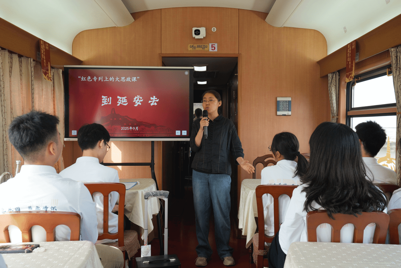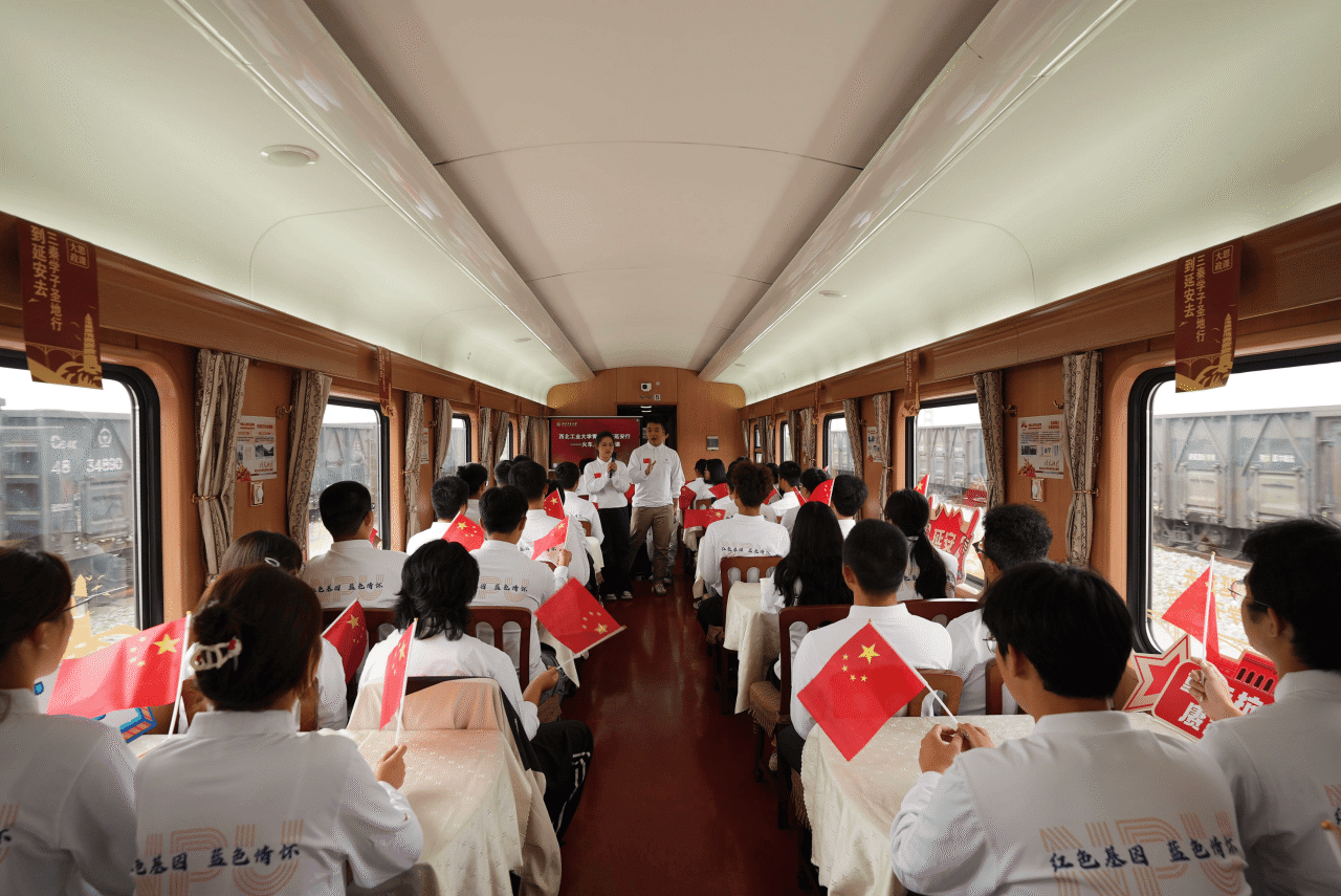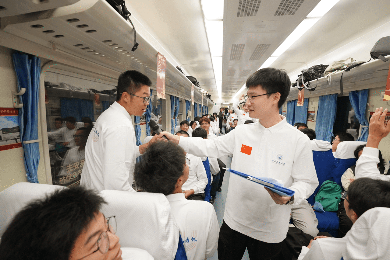 旅途中,学校还特别组织了专题党课、知识抢答、同唱红色歌曲等丰富多彩的活动。其中,延安市委党校的老师们讲述专题党课《到延安去》,通过讲授抗战时期爱国青年不惧艰险奔赴延安的光辉往事,引导青年学子学习他们对真理的追求、对民族的责任、对信仰的坚守。邀请了中国航空工业集团公司第一飞机设计研究院项目副总师黑文静等优秀校友讲授总师思政课,以总师校友秉持红色初心,为大国重器研制忘我奉献、攻坚克难所取得的卓越成就,激励青年学子弘扬“总师育人文化”,为国铸剑。激情澎湃的讲述,精彩生动的演绎引发了师生强烈共鸣,车厢内不时爆发出热烈掌声。
