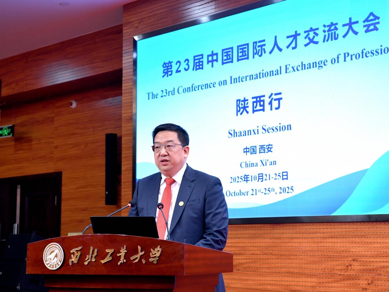 白崇军代表陕西省科学技术厅(陕西省外国专家局)致辞。他表示,开放的陕西期待与各国专家共享机遇、共商合作、共促发展,欢迎越来越多的外国专家来陕交流合作、创新创业,与陕西人民携手书写中外互鉴、共促发展的美好篇章。