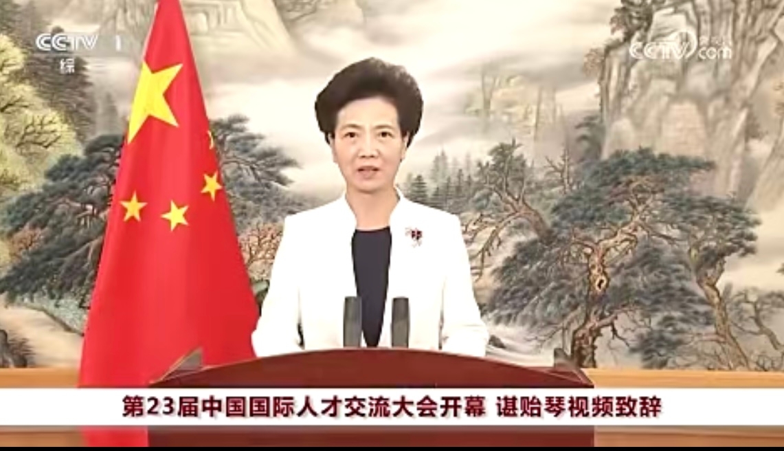 10月21日上午,第23届中国国际人才交流大会在上海开幕,国务委员谌贻琴以视频方式发表致辞并宣布开幕。大会以“聚天下英才、谋合作共赢”为主题,由人力资源社会保障部(国家外国专家局)和上海市人民政府联合主办,来自110多个国家和地区的2600多名外国专家出席开幕式。