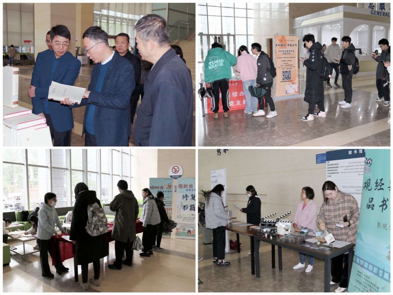 在今年的校园阅读文化节,为更好地让读者感受阅读魅力,陶冶情操,图书馆还现场开展了《复兴文库》主题书展、手绘帆布袋、修复书籍等系列活动。图书馆馆长黄攀峰、党总支书记侯沛勇陪同张卫红参观了《复兴文库》主题书展和学习书屋主题教育专题书架。