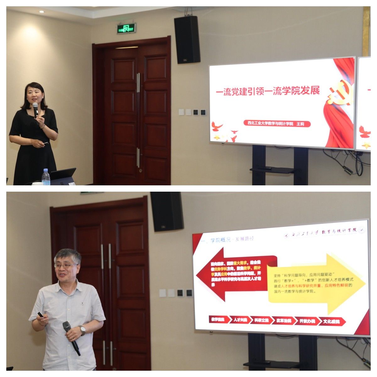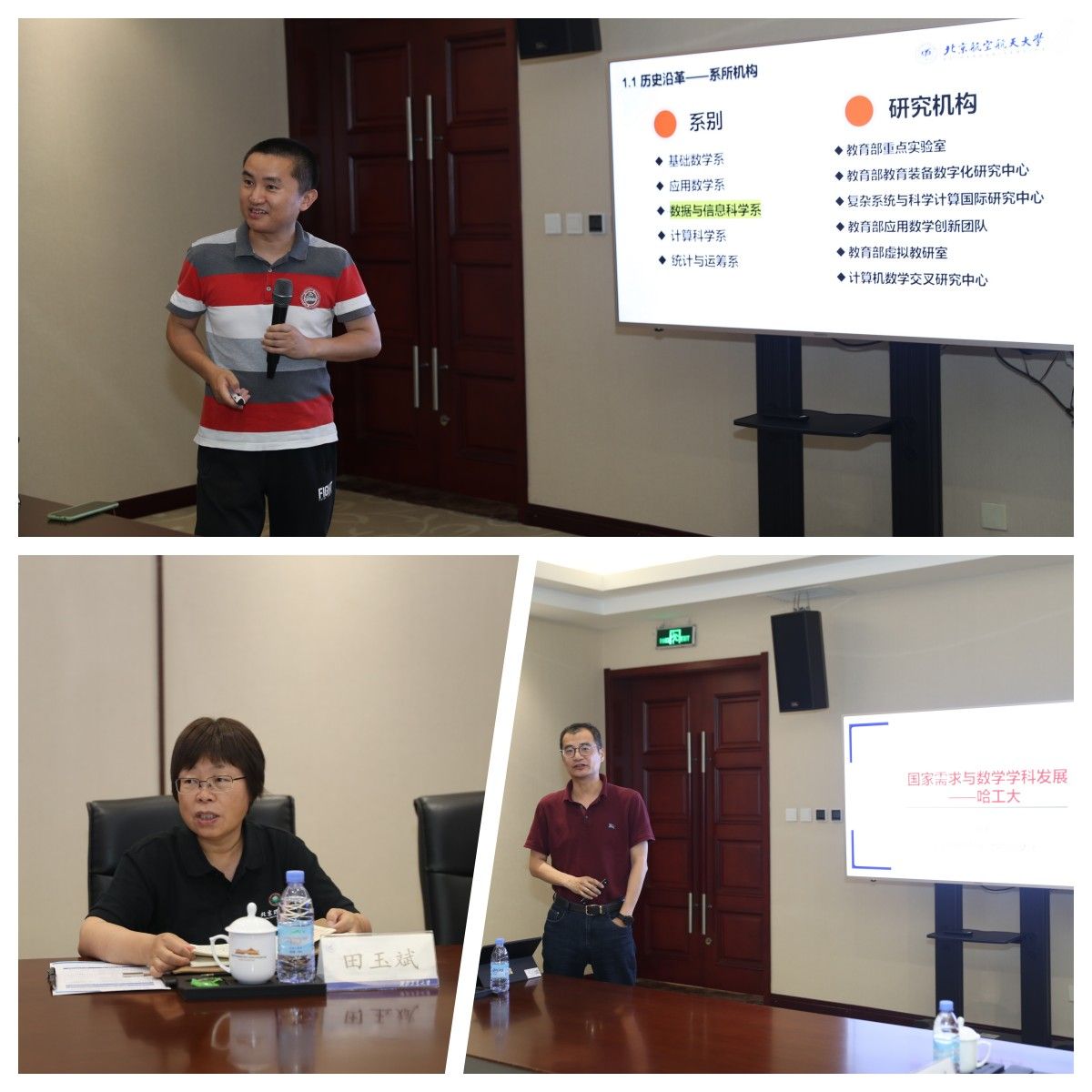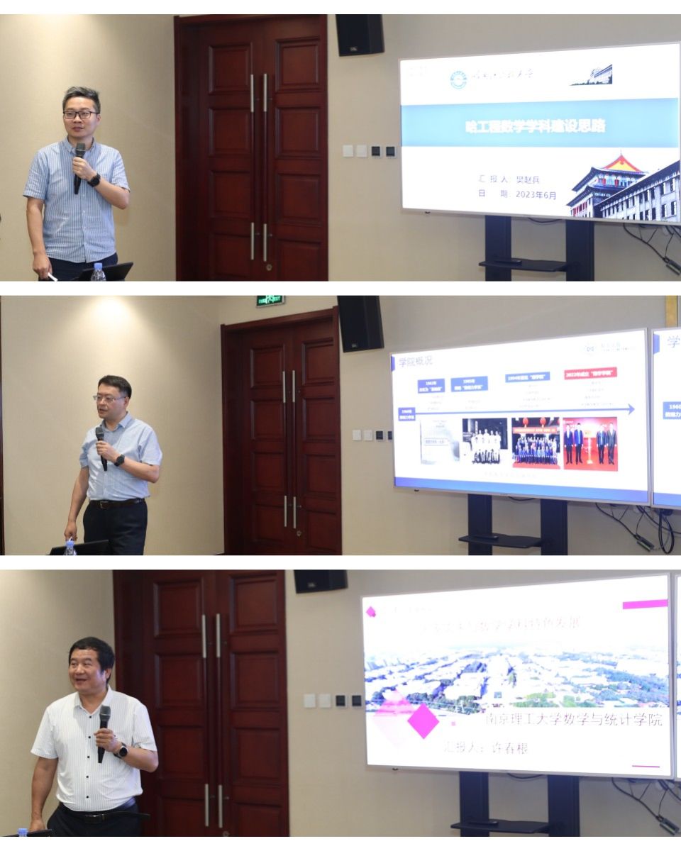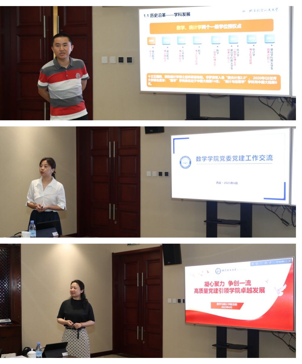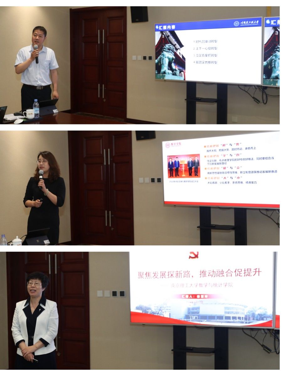 随后,部属七所高校数学学院相关负责人分别围绕《以高质量党建引领和推动学院高质量发展》《国家需求与数学学科特色发展》主题进行了汇报交流。北京航空航天大学数学科学学院在党建工作中形成的“夯基础、促改革、做党建研究”的工作思路,在学科发展工作中的提出的“大数学”立体化数学人才培养体系的建立;北京理工大学数学与统计学院在党建工作中形成的“三确保、两提升、一促进”的工作理念,在学科发展工作中提出的对硬核基础数学队伍的培养方式;哈尔滨工业大学数学学院在党建工作中提出的打造“金牌专业、金牌课程、金牌教师”,实现“出成果、出名师、出人才”的学院奋斗目标,在学科发展工作中提出的“三个对标”的科学研究发展策略;哈尔滨工程大学数学科学学院在党建工作中提出的“四转型”工作思路及举措,在学科发展工作中推行的“六计划”重点举措;南京航空航天大学数学学院以“四融”党建推动学院高质量发展的工作思路,在学科发展工作中打造的“一体两翼双助力”的发展体系;南京理工大学数学与统计学院形成的“三开三共”的党建工作理念和“三融三聚”的党建工作思路,在学科发展工作中推行的创新发展思路以及beat365数学与统计学院在党建工作中“1745”发展思路,在学科发展工作中提出的“数学+”“+数学”的创新人才培养模式。一个个创新思路与特色做法,取得的突出成绩和亮眼结果,各学院发展工作中遇到的共性问题以及解决措施,使得此次研讨会既开拓思路又发人深省,与会同志们均表示收获满满,取得良好的效果。