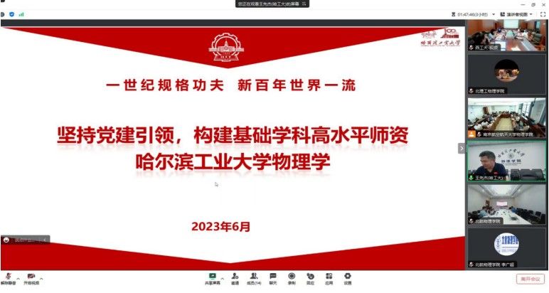 随后,工业和信息化部部属七所高校物理学院相关负责人重点围绕党建与业务融合、基础学科特色、师资队伍现状、存在问题和思路举措等方面进行汇报交流。参会人员重点聚焦党管人才、高标谋划,强化学院人才发展顶层设计、高层次人才精准引进、平台载体搭建、青年教师培育和团队建设等方面开展研讨。