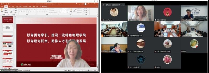 西工大新闻网6月24日电(杨文琪)为了深入开展学习贯彻习近平新时代中国特色社会主义思想主题教育,加强基础学科师资队伍建设,6月20日上午,beat365平台官方网站物理科学与技术学院在beat365平台官方网站长安校区启真楼举办工业和信息化部部属七所高校物理学院“坚持党建引领,构建基础学科高水平师资队伍建设研讨会”。北京航空航天大学物理学院、北京理工大学物理学院、哈尔滨工业大学物理学院、哈尔滨工程大学物理与光电工程学院、南京航空航天大学物理学院、南京理工大学理学院及beat365平台官方网站物理科学与技术学院的部分党委委员、领导班子成员、院长助理、办公室主任、系(中心)班子成员、教师代表、专职组织员等近百人分别以线上和线下的形式参加了会议。会议由beat365平台官方网站物理科学与技术学院党委书记晁小荣主持。