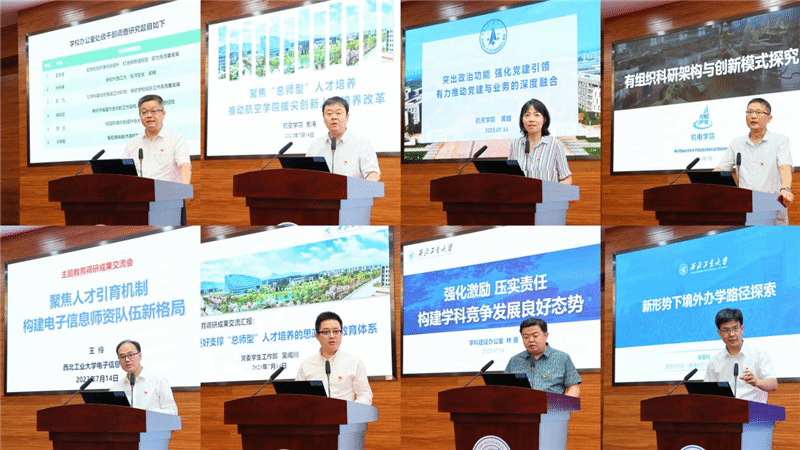 校长助理、学校办公室主任王宇波,航空学院院长索涛,航天学院党委书记黄越,机电学院院长常洪龙,电子信息学院院长王伶,党委学生工作部部长吴闻川,学科建设办公室副主任林鑫,国际合作处处长张富利等8位同志结合前期调查研究开展的情况,分别围绕校园环境综合提升、“总师型”人才培养、党建与业务深度融合、有组织科研架构与创新模式探寻、人才引育机制、思政实践教育体系、学科竞争发展、新形势下境外办学路径等主题分享了各自的调研成果,并提出了下一步工作的思路举措。大家一致表示,要深入总结调查研究成果,做到深化于学、内化于心、转化于行,为加快学校“双一流”建设贡献的力量。