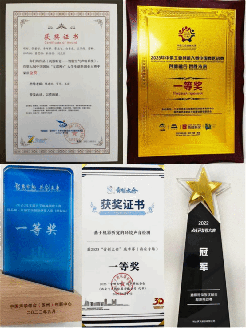 据悉,西工大航海学院-迅声环境声音感知联合实验室(JLESS)成立于2021年9月。实验室算法团队成员已连续6年参与DCASE挑战赛,在历届比赛中多次斩获前三甲,用实力彰显了团队在智能音频技术领域的巨大优势。团队还致力于促进智能音频算法在实际场景中的落地应用,研发的相关空气声呐产品已成功应用于违法鸣笛抓拍、工业设备异常声音诊断等安防、电力、石化及煤炭多个领域。此前,在第七届中国国际“互联网+”大学生创新创业大赛中,团队的“机器听觉——智能空气声呐系统”获得总决赛金奖;在2023年中俄工业创新大赛中国赛区决赛中,团队的“智能空气声呐声音监测系统”获得中国赛区决赛一等奖。