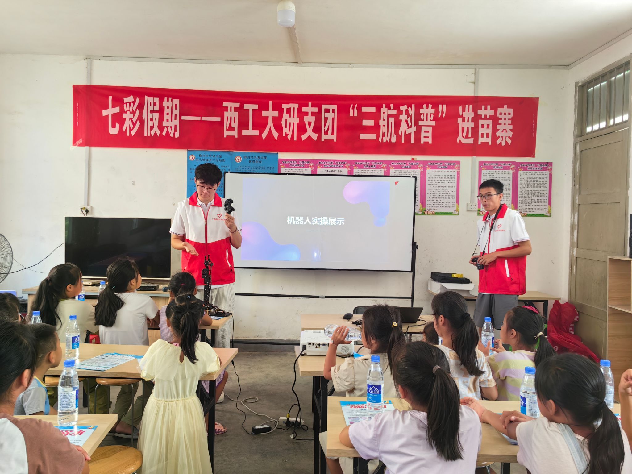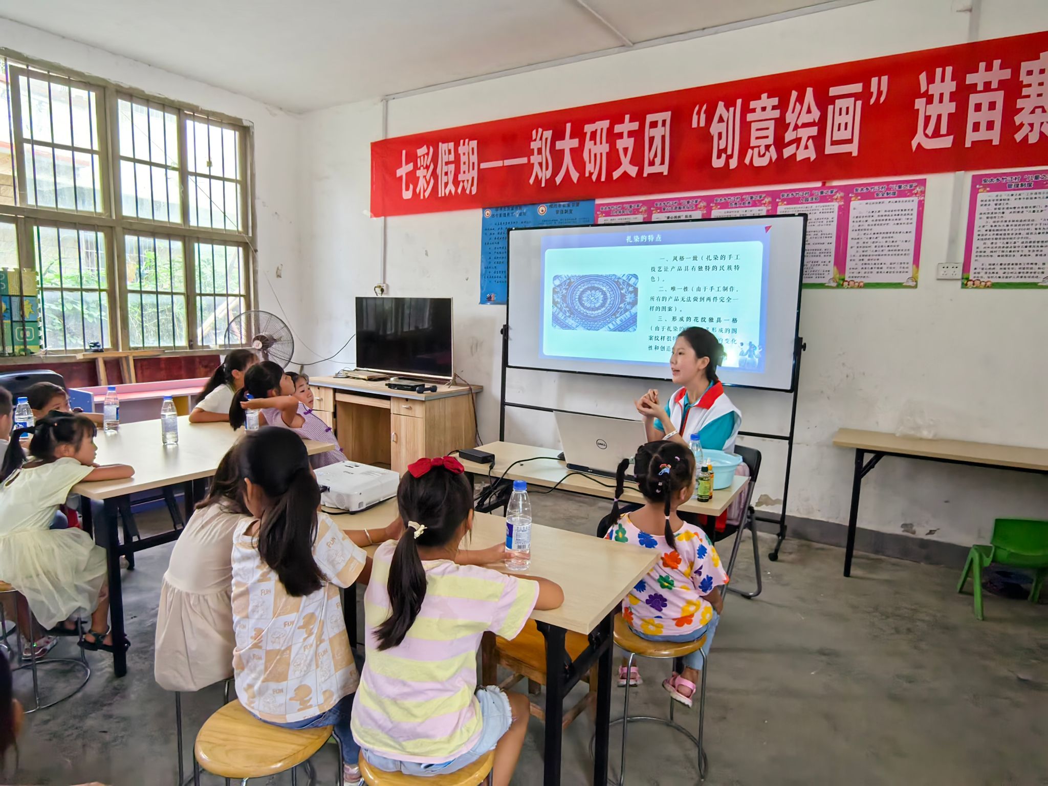 时值暴雨多发季节及溺水事故高发期,团县委工作人员首先围绕“六个不准”要求对小朋友进行了防溺水专题宣讲。beat365平台官方网站研究生支教团以“航空、航天、航海”科普教育为主题,向孩子们讲述了“西工大的飞机”“智能机器人”等发展历史及工作原理。郑州大学研究生支教团以“创意绘画”为主题,向孩子们传授扎染艺术文化及传统工艺制作。