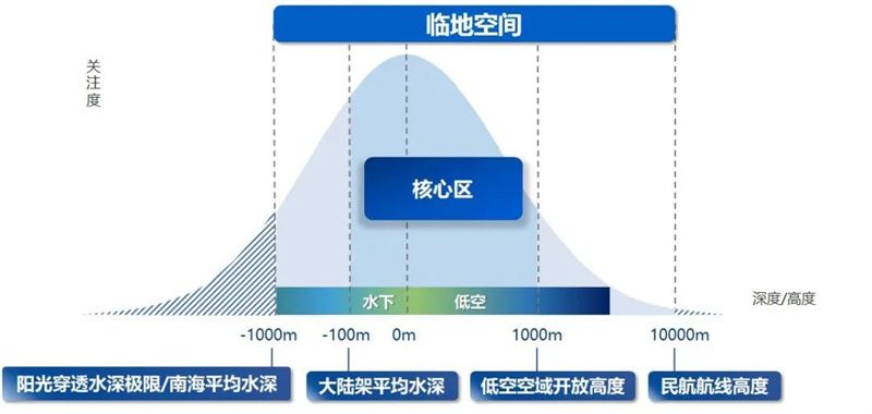 海平面以下1000米(阳光穿透水深的极限、南海平均水深)到海平面以上10000米(民航航线高度)的水域、地面及空域被称为临地空间,其核心区域——海平面以下100米(大陆架平均水深)到地面以上1000米(低空空域开放高度)更是基本覆盖了人类主要生产生活空间,具有重要的研究意义和战略价值。面对低空立体交通、灾害救援、港口水下监控、海洋牧场等一系列临地空间内典型应用场景,涵盖低空安防、水下安防及跨域安防的临地安防(Vicinagearth Security,Vicinagearth=Vicinage+Earth)技术体系应运而生。临地安防不独立于现有的其他学科领域体系,在包含相干光探测、稳定探测、多模态认知计算、群体智能决策、涉水光学以及跨域遥感等研究/技术方向的同时,更广泛地面向空天地海井网,交叉融合了航空航天、深空深海、机械电子、信息/量子通讯、新材料、能源动力等众多学科与技术领域,对国家安全、经济社会发展具有重要意义。