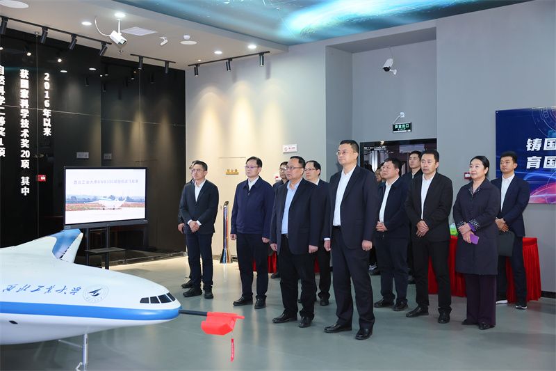 高涛一行还参观了西工大空天结构技术重点实验室,了解航空航天飞行器高性能轻量化领域科研情况。