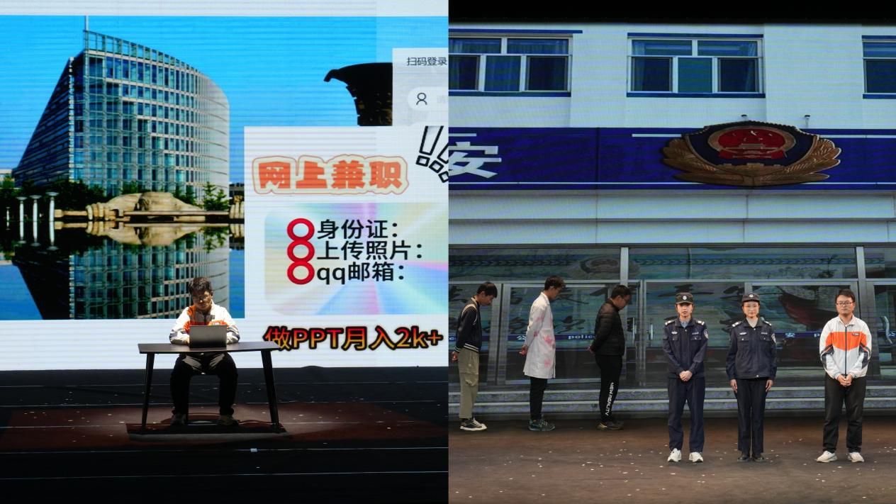 动力与能源学院学生吴天兵参演《指尖谜局》感受:“我是剧组的执行导演,看到所有同学20多天的付出和努力化为成果,最终将《指尖谜局》成功呈现上舞台,内心是替大家骄傲的;剧目聚焦网络时代一个普通家庭发生的AI诈骗事件,通过参演其中,更加增强了我的反诈意识,认识到了网络安全对于维护人民群众利益、维护国家安全的重要性。”