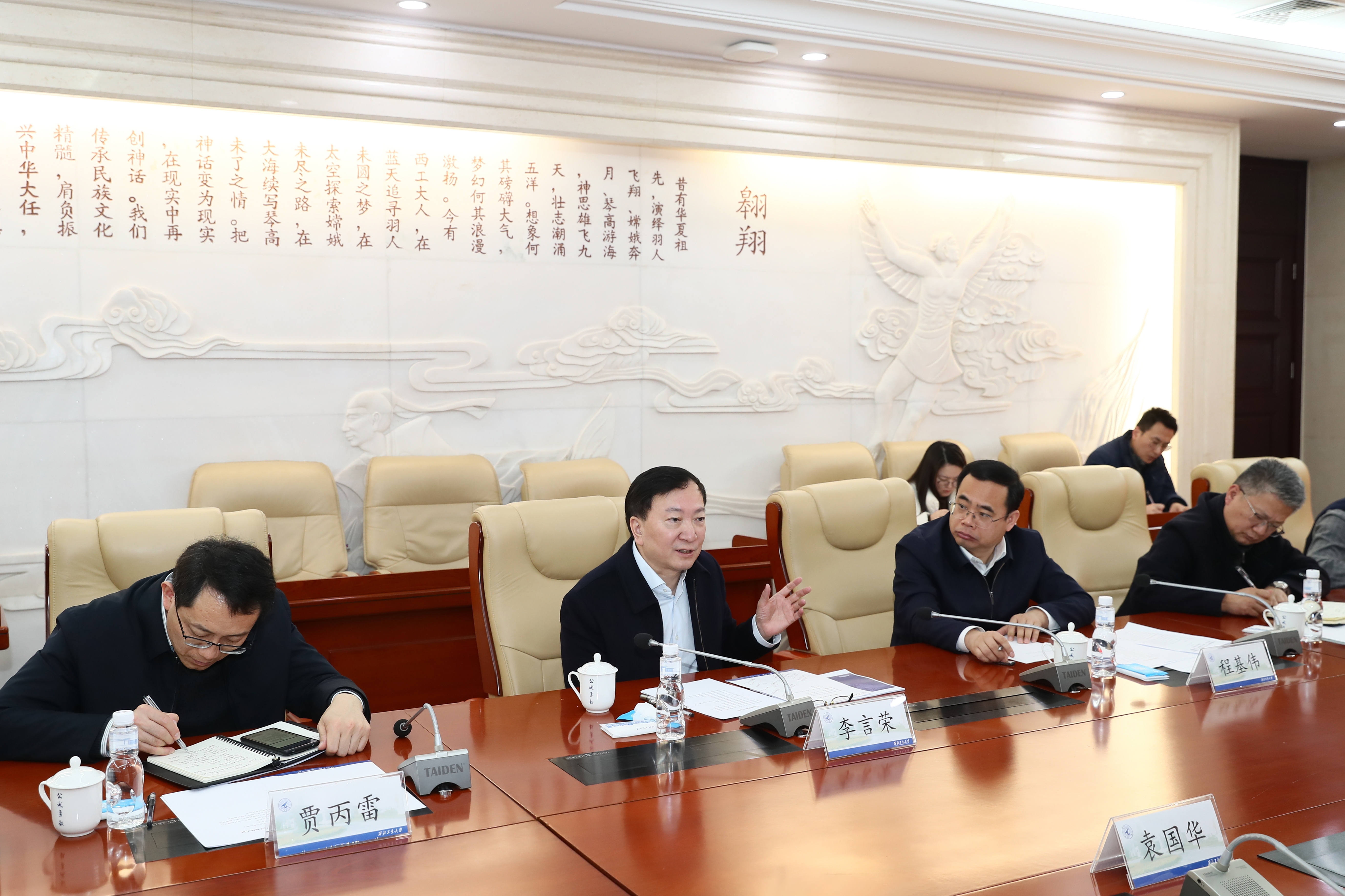 李言荣对袁国华一行表示欢迎。他说,近年来,在习近平总书记的亲切关怀下,在李强总理的亲自推动下,临港发生了巨大变化。临港新片区聚焦前沿科技、国际贸易、高端航运、跨境金融等方向积极与众多高校、科研院所开展沟通交流,在科技创新和产教融合上取得了突出成绩,有着良好的校地合作基础。西工大工科特色鲜明,在大飞机、微小卫星、人工智能、电子信息等领域与临港新片区的优势产业合作潜力大,希望双方能够在博士后工作站和学生实训基地、科创功能平台、校友项目创新联合体等方面探索出更加多元的校地合作模式,为国家经济社会发展和实现高水平科技自立自强作出贡献。