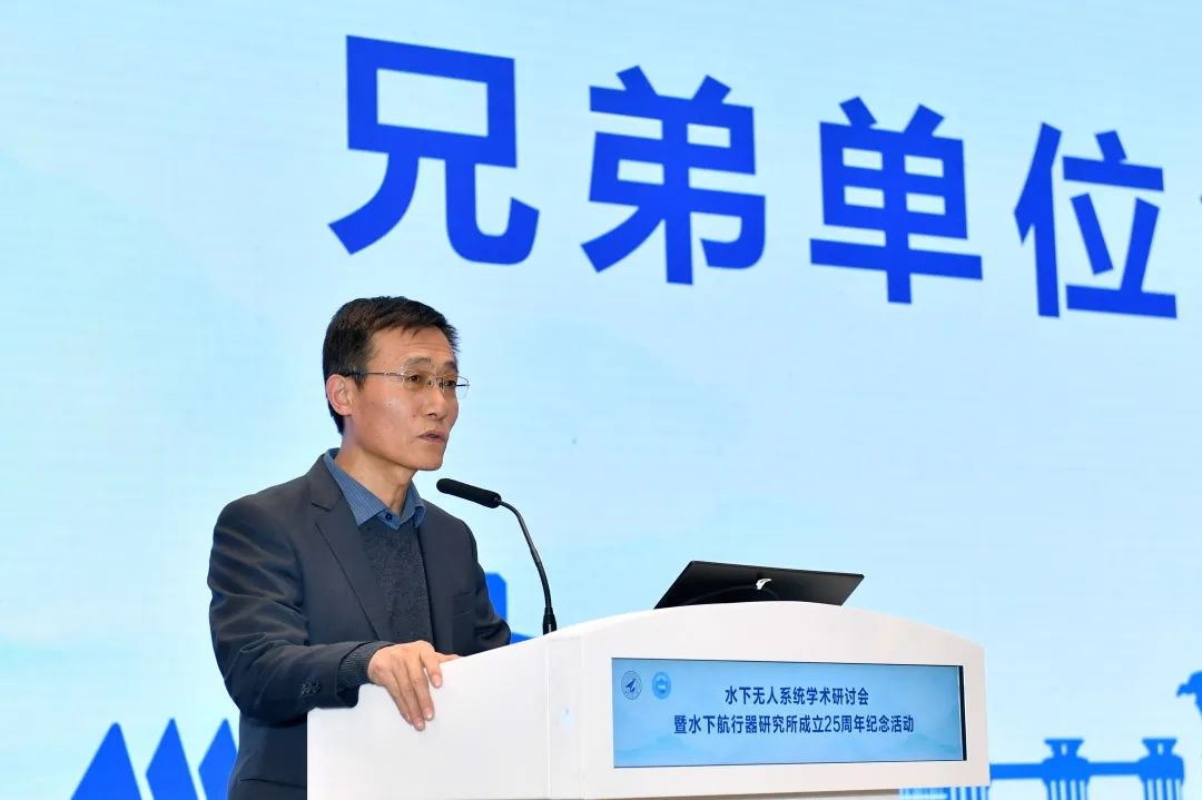 随后,各位嘉宾代表发表讲话。邱志明院士代表海军研究院对研究所成立25周年表示衷心的祝贺:团队在水下航行器的总体设计、动力推进、导航控制、通信集群等方面都取得了突破性的成果,引领我国水下航行器快速发展。多项科研成果批量列装部队,为我国海军建设做出了重大贡献。同时,团队在科研平台建设和人才队伍建设也取得了很大的成绩。祝福水下航行器研究所能够不断创新,再创辉煌。