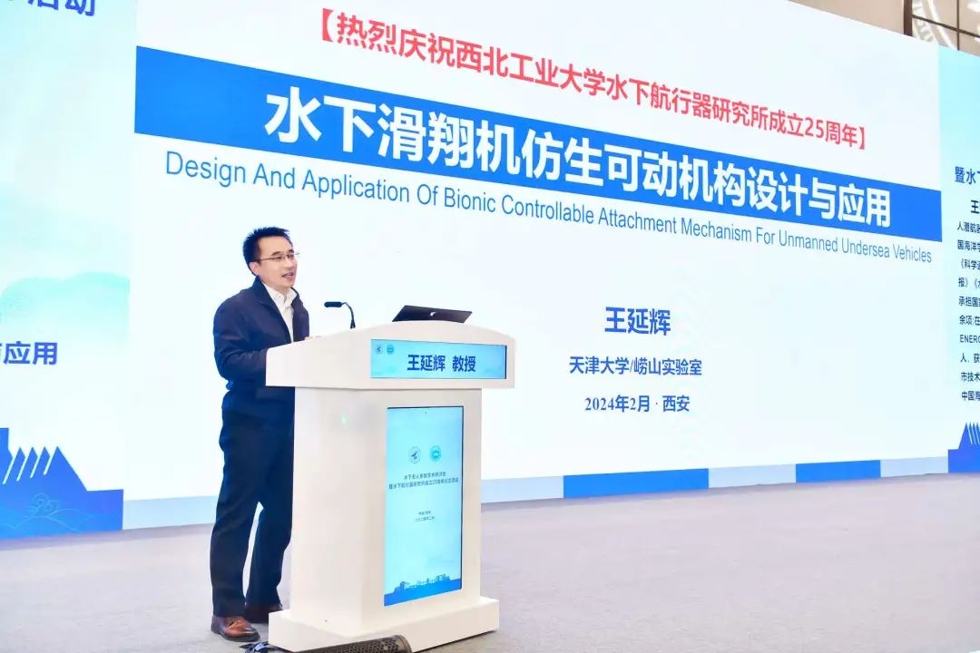 天津大学机械工程学院院长王延辉教授作“水下滑翔机仿生可动附体机构设计与应用”报告,从研究背景与重要意义、仿生设计和潜器应用、趋势预测与亟需技术三方面,详细介绍水下滑翔机等无人潜航器仿生可动附体机构设计方法,并以水下滑翔机附体类似海洋生物具备自修复、自拓展、自重构等“按需调整”能力为约束,提出了多种具备工程应用价值的仿生可动附体机构,成功研制了具备艏/尾部姿态控制、机翼参数调节、机翼空间状态调整、机翼/尾部运动节律调控等能力的多款新型水下滑翔机,进而为多模式、多驱动与多功能的复合型无人潜航器的创新设计提供构型方法与分析理论指导。以期水下滑翔机等无人潜航器能在海洋连续立体观测方面具备更大的优势。
