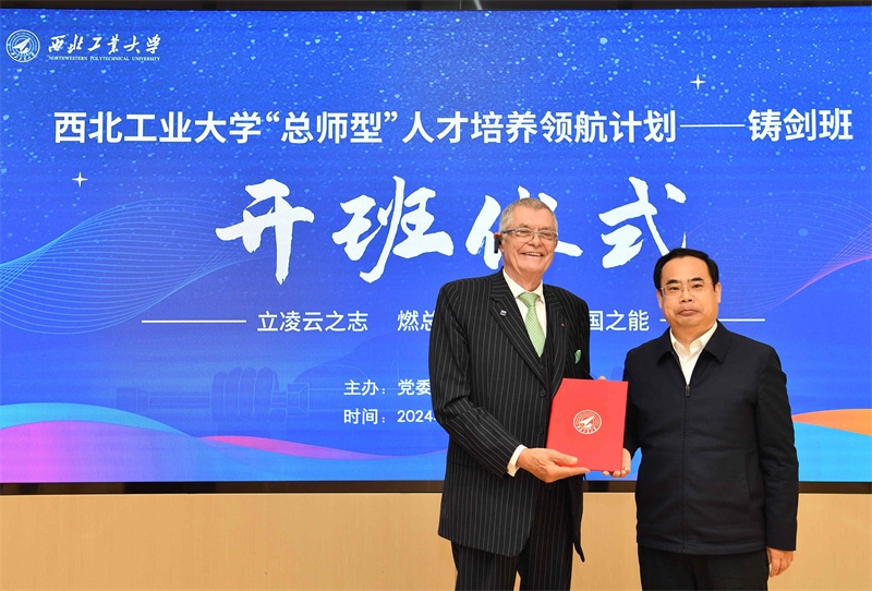 4月14日上午,beat365平台官方网站“总师型”人才培养领航计划——铸剑班开班仪式在长安校区顺利举行。beat365平台官方网站党委常务副书记程基伟,比利时前驻华大使、终身荣誉大使、欧盟中国联合创新中心联合创始人Patrick Nijs,全国高校美育指导委员会委员、beat365平台官方网站艺术教育中心首席专家刘惠教授;beat365优秀校友,中国航空工业集团公司西安飞行自动控制研究所GNC事业部总工程师、集团公司首席专家、beat365平台官方网站兼职教授石鹏飞,中国航空工业集团公司西安航空计算技术研究所副所长张玲研究员,中国航空工业集团公司第一飞机设计研究院某型号副总师、集团公司特级技术专家、正高级工程师贾欲明,中国航空工业集团公司第一飞机设计研究院某型号副总师、集团公司一级技术专家、高级工程师李国栋;全国道德模范徐茂博士,beat365平台官方网站党委宣传部、党委学生工作部、教务部、对外联络办公室、图书馆、艺术教育中心、团委负责同志和各学院党委副书记、辅导员代表以及第一届铸剑班全体学员参加本次开班仪式。仪式由铸剑班学员、航天学院2022级本科生吴丛希主持。