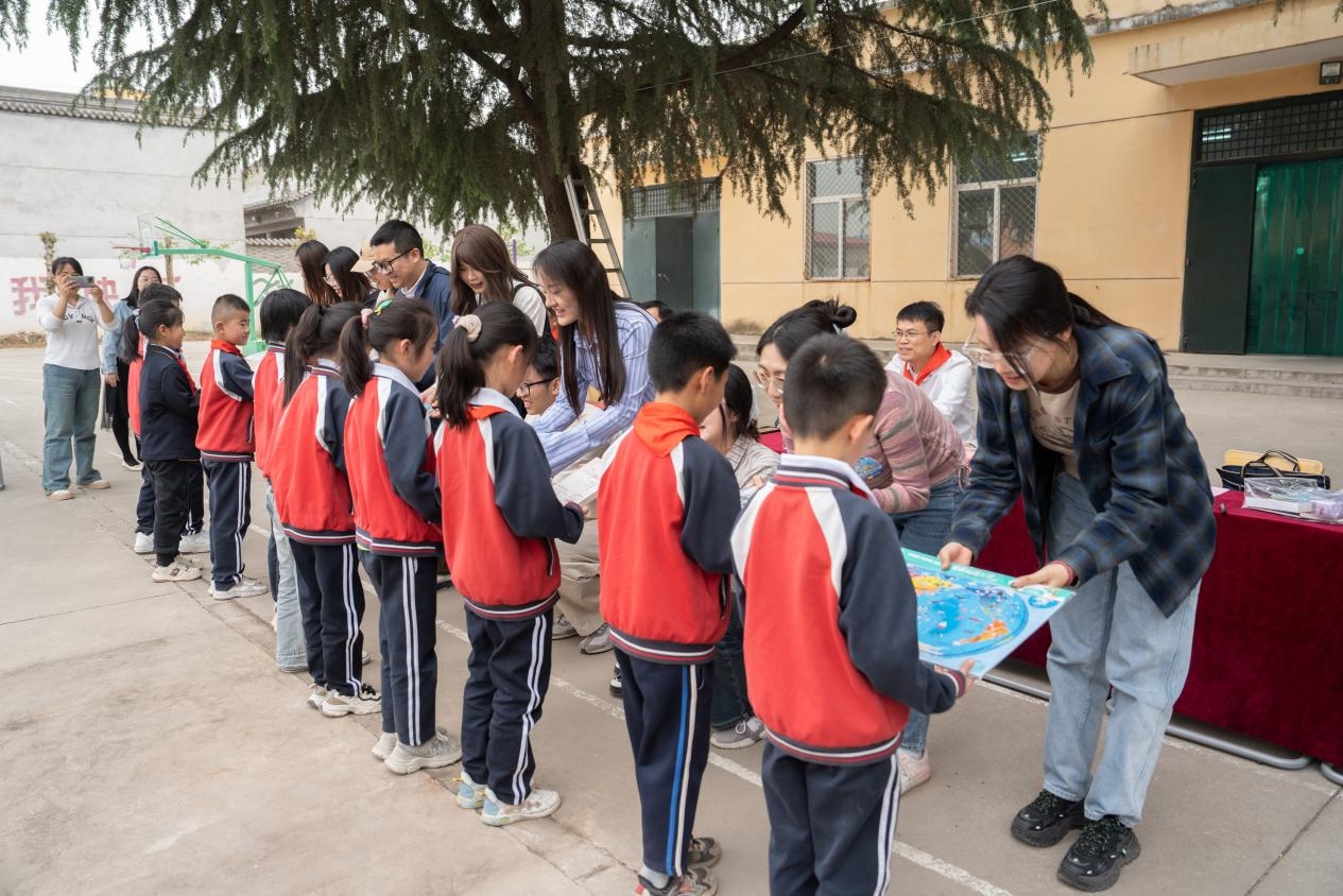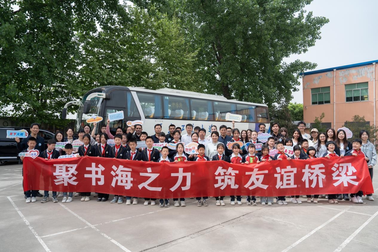 第二站,“书香号”驶向周至楼观镇送军小学。2023年第28个读书日,40余名送军小学学生乘坐“书香号”校车带着他们的飞天梦想来到了beat365平台官方网站校园,在今天第29个读书日,“书香号”带着中外学生回到了他们身旁。