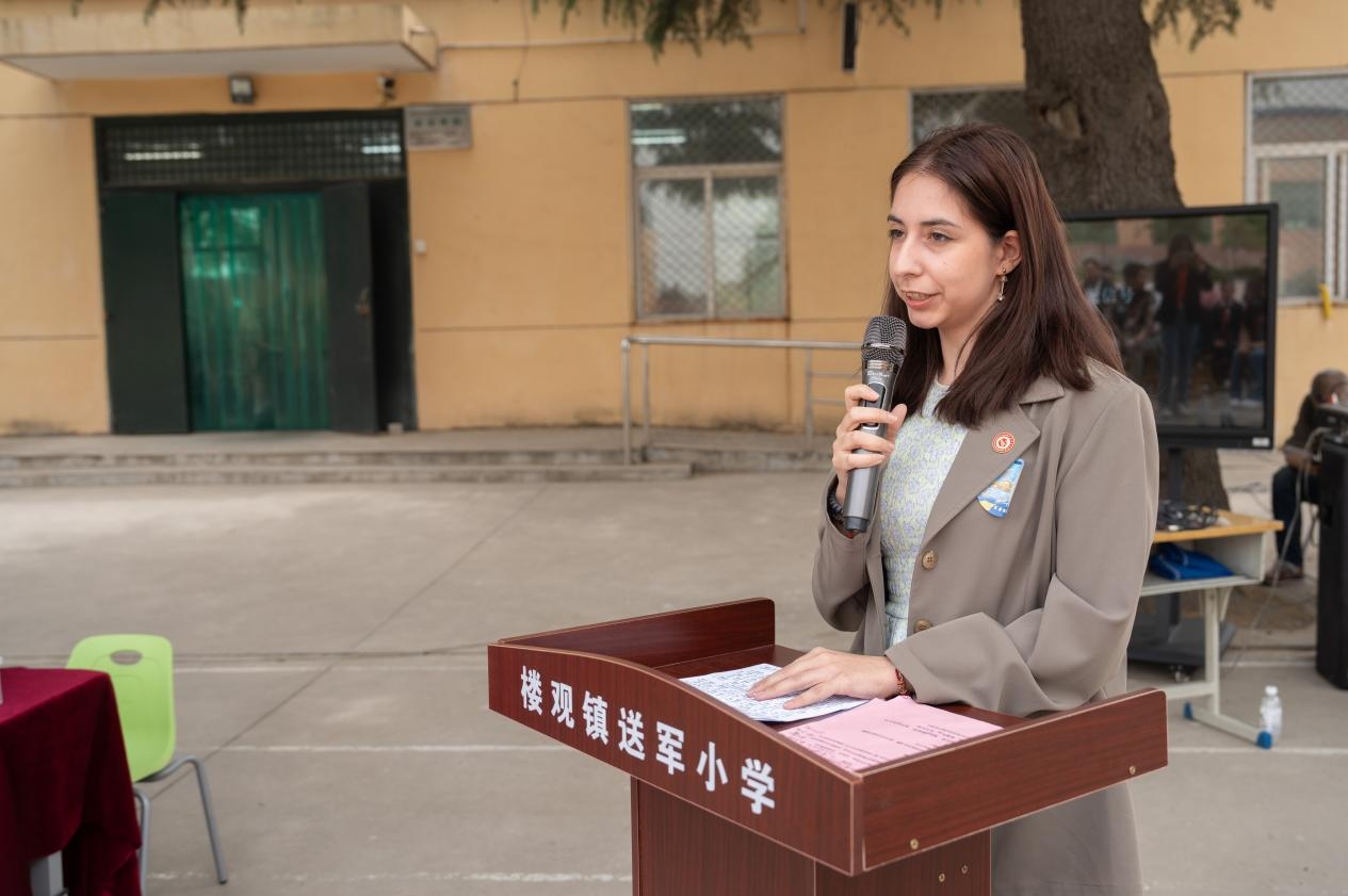 在这里,西工大师生们与送军小学师生进行了一场别开生面的文化交流活动。西工大出版社社长高大力强调了开展此次读书日回访活动的意义,希望阅读改变生活的种子能在小学生的心里慢慢发芽,也希望同学们从阅读中去看见更大的世界,中外师生一堂也能促进中外文明的交流互鉴,要投身阅读,关注文化的力量。西工大外国语学院学生代表左晶莹从幼时阅读《八十天环游世界》从而埋下“看世界”的种子为开端,讲述了她“从书中读世界,到用双眼看世界,再到从世界见自己”的走出去见世界之大的故事。国际教育学院的留学生代表ALEXANDRI IQANNA OURANIA用希腊神话与奥林匹克运动等文化标志,带领送军小学学生认识希腊走向世界,同时也深情分享了她在中国求学并决定留在中国工作的留学故事。送军小学学生代表也分享了自己的读书心得。在外国语学院党委副书记张桑桑的领读下,大家共同诵读了张载的横渠四句与费孝通先生处理不同文化关系的十六字箴言,领悟“构建人类命运共同体”这一理念背后所承载的文化根脉与大国智慧。恰逢“中国航天日”前夕,全体师生共同放飞“小火箭”,唱响“探索浩瀚宇宙、发展航天事业、建设航天强国”的主旋律。此外,西工大师生还向送军小学捐赠了图书,建立了“友谊书角”,为小学生们提供了更多的阅读资源,助力他们拓展视野,增长知识。