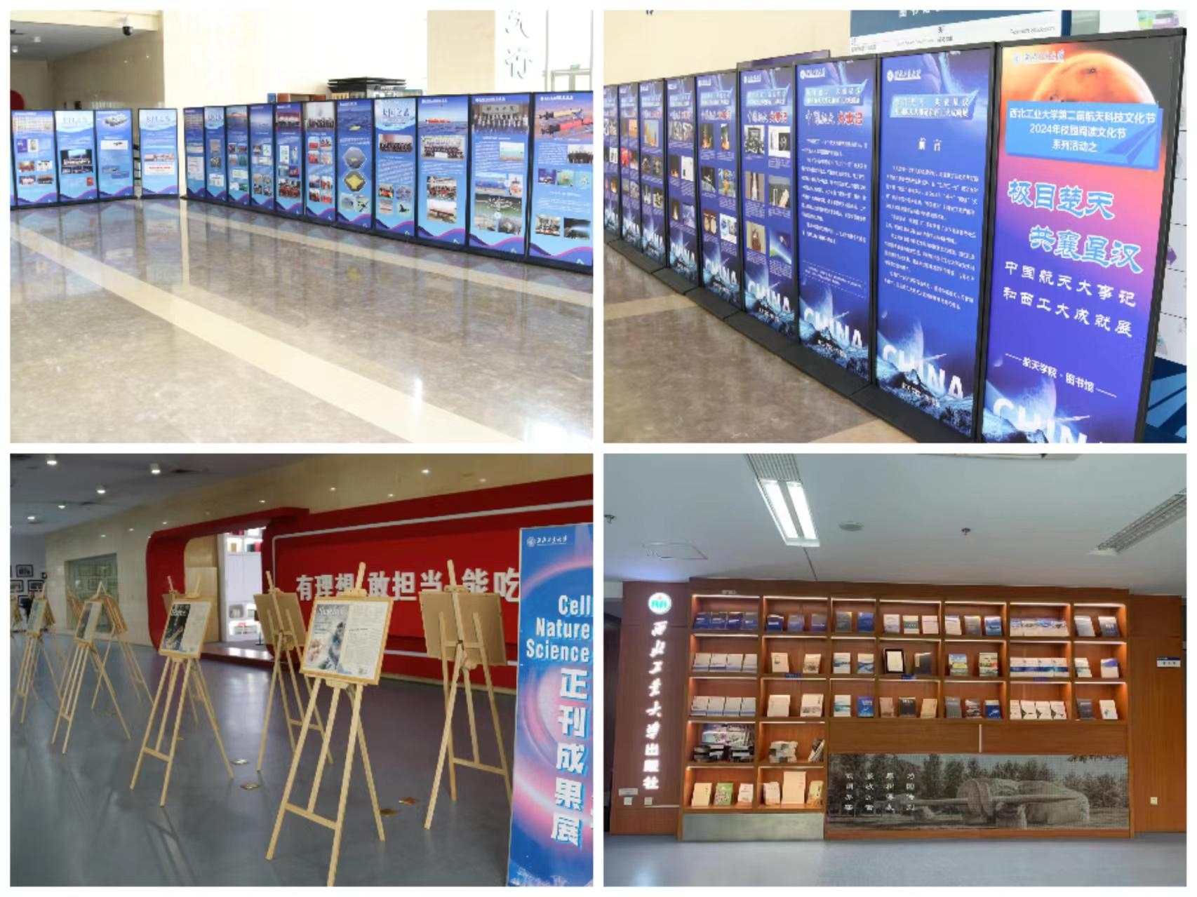 开幕式启动后,图书馆集中展示了近期建设的新资源、新空间以及各类特色展。其中,与航海学院合办了“大国之蓝”海洋科技文化主题巡展,与航天学院合办了“极目楚天 共襄星汉”中国航天大事记和西工大成就展,遴选并举办了beat365平台官方网站CNS正刊成果展、西工大出版社“总师育人文化”及“三航”优秀图书入藏展。