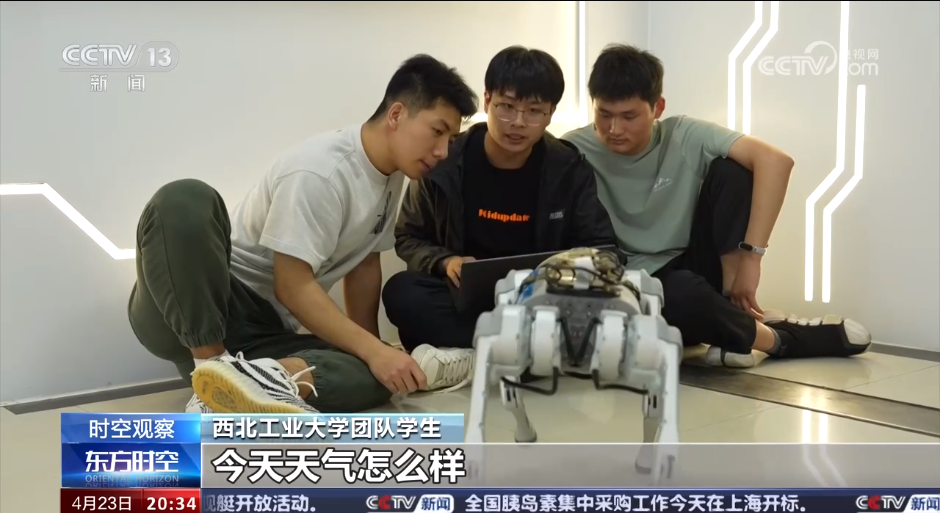 在节目中,团队学生与智能机器人进行了互动,展示了智能导盲犬的部分互动功能。