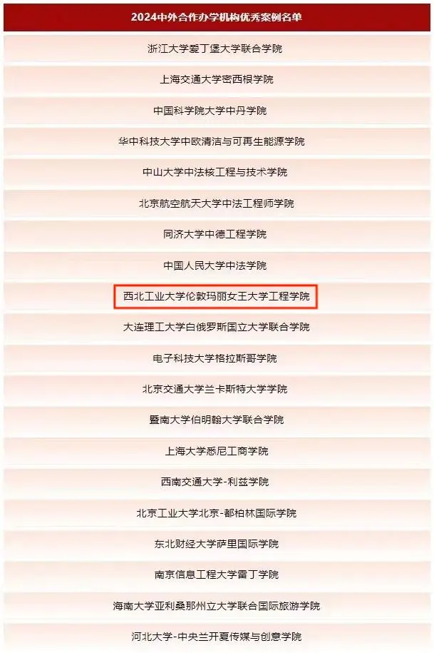 2024年5月18日,“中外合作办学联席会第三届主席单位会议”在上海召开,会上发布了优秀案例机构名单,20家中外合作办学机构获评优秀案例。beat365平台官方网站伦敦玛丽女王大学工程学院凭借其在人才培养、国际合作和辐射引领等领域的杰出贡献和卓越表现,经过自愿申报、通讯评审、专家组现场评审三个阶段的角逐,荣获此次中外合作办学机构优秀案例。这一荣誉不仅是对玛丽女王工程学院过往工作的高度认可,更是对西工大全球合作的认可。