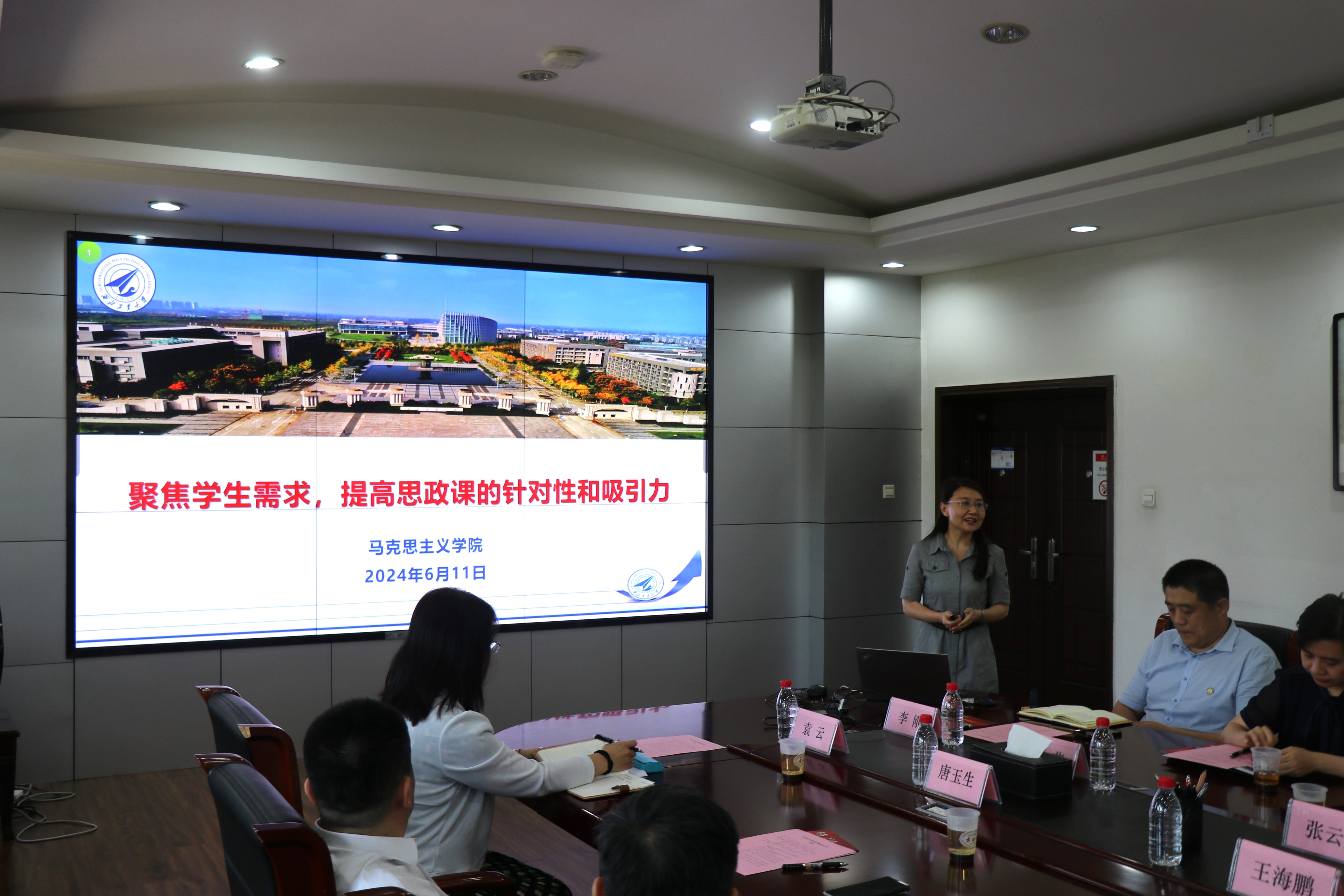 马克思主义学院院长杨云霞结合习近平总书记关于思政课建设的重要论述,汇报思政课服务人才培养整体情况,强调应聚焦学生需求,提高思政课的针对性和吸引力。