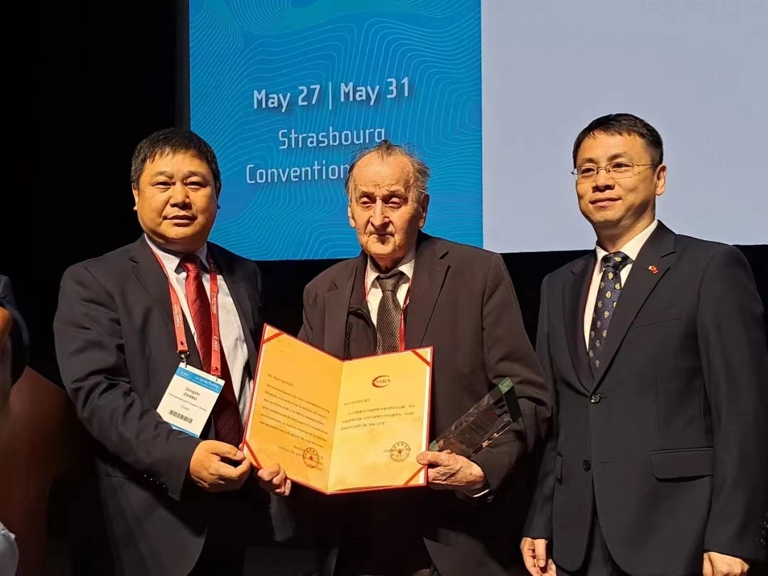 5月29日下午,在E-MRS春季会议的大会报告上,C-MRS向E-MRS创始人兼秘书长Paul Siffert教授颁发了“中国材料研究学会国际合作奖”,这一奖项是C-MRS首次设立,专门授予为促进中国材料界在国际上的发展合作做出突出贡献的知名专家或者学者。本次颁奖由C-MRS监事长李光宪教授主持,理事长魏炳波院士介绍了Paul Siffert教授一生致力于促进中欧材料界合作、并为此做出了杰出贡献的事迹,中国材料研究学会对国际合作的高度重视,以此表达对Paul Siffert教授的敬仰和尊重。随后,总领事潘昱旻亲自颁发奖杯,秘书长张增志教授授予获奖证书。在颁奖过程中,Siffert教授对这一殊荣表示了诚挚的感谢,并回顾了去年被授予的荣誉理事称号,表示对此荣耀的珍视,并希望在他的努力推动下,中欧材料科学领域的合作能够进一步加强与发展。他承诺将继续致力于推动中欧材料科学领域的合作,并为此不懈努力。