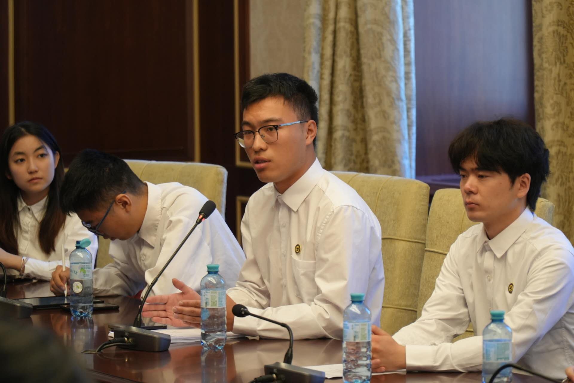 同学们围绕人类命运共同体理念下的多边主义维护和践行、中国推动联合国2030可持续发展议程的具体举措、青年学生国际化视野和全球胜任力培养等内容积极提问,并分享了在奥地利实践研学期间的见闻和感受。代表团各位外交官认真倾听同学们的发言,耐心解答同学们的问题,并对同学们昂扬的精神面貌与责任担当予以肯定,勉励同学们在访学过程中学所收获、学有所成。