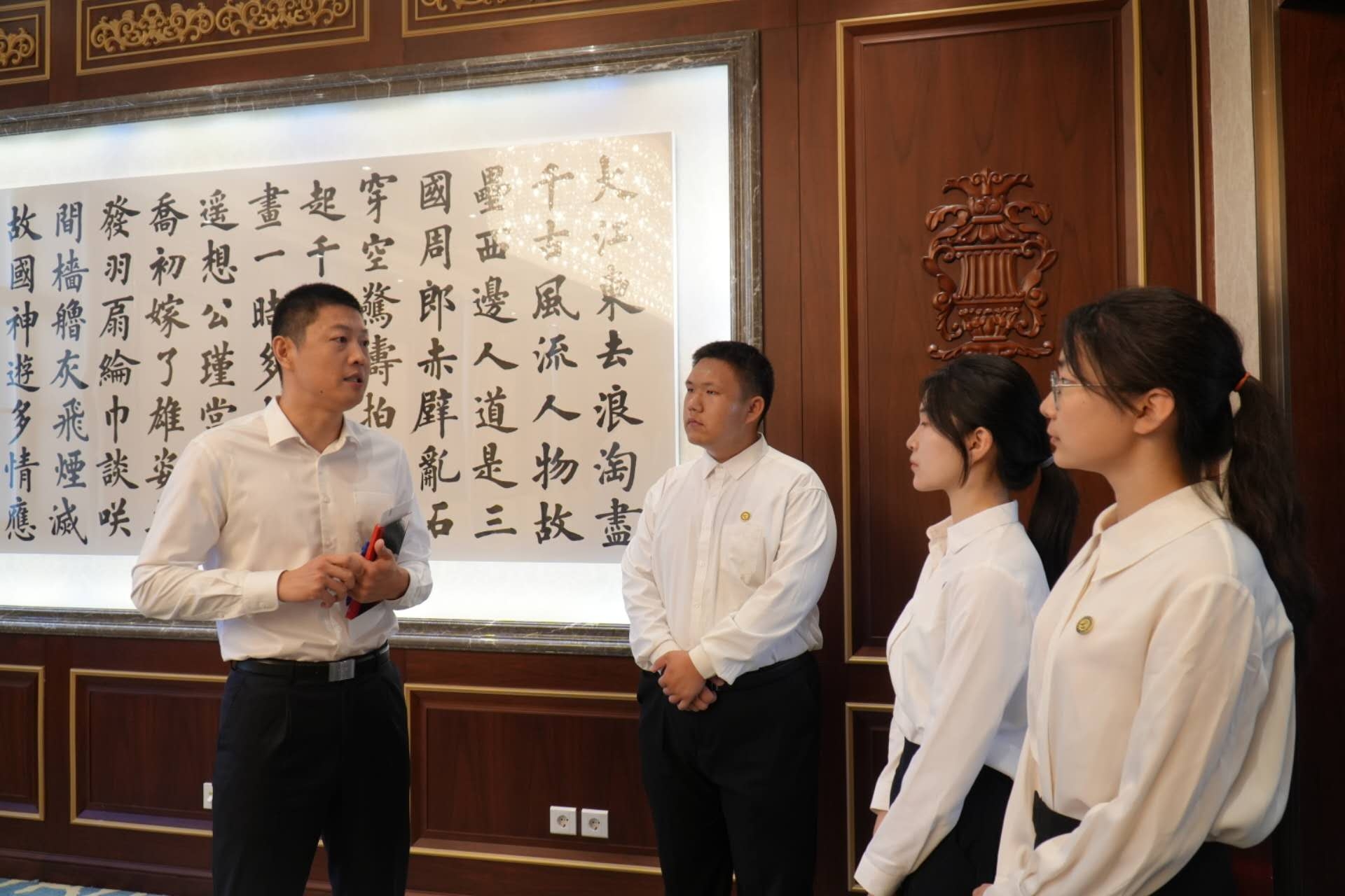吴闻川向代表团汇报了学校以及首届铸剑班的相关情况,对代表团为我国外交事业所做出的辛苦付出和重要贡献表达了诚挚敬意,对此次师生一行的热情接待表达了衷心感谢。