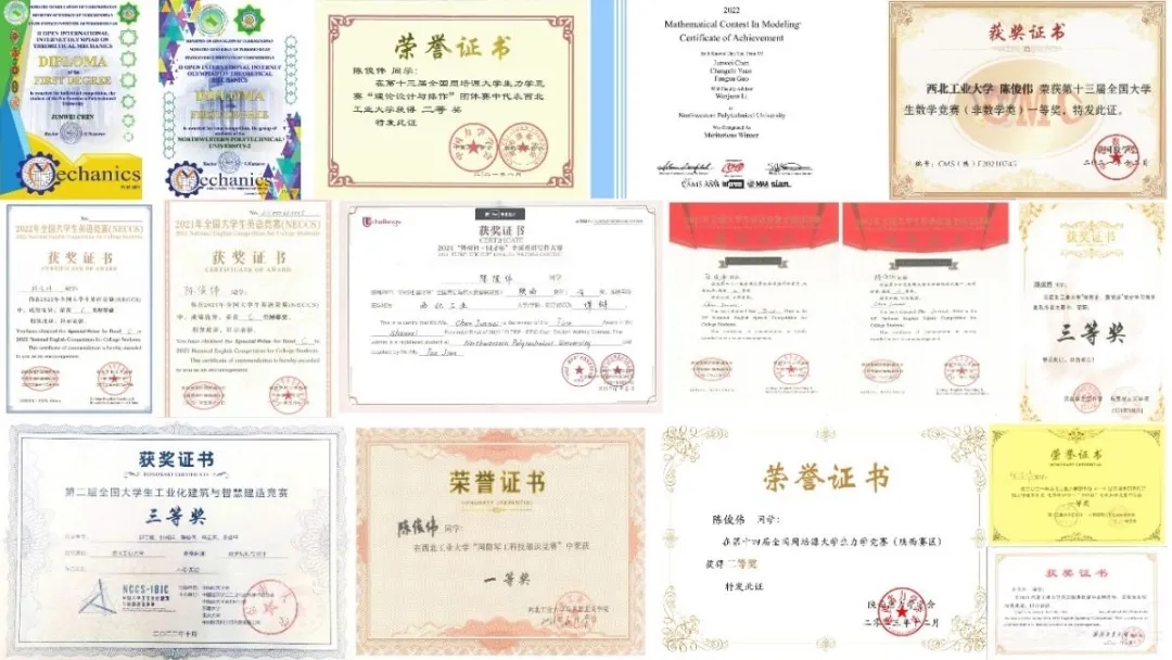 陈俊伟部分竞赛获奖证书