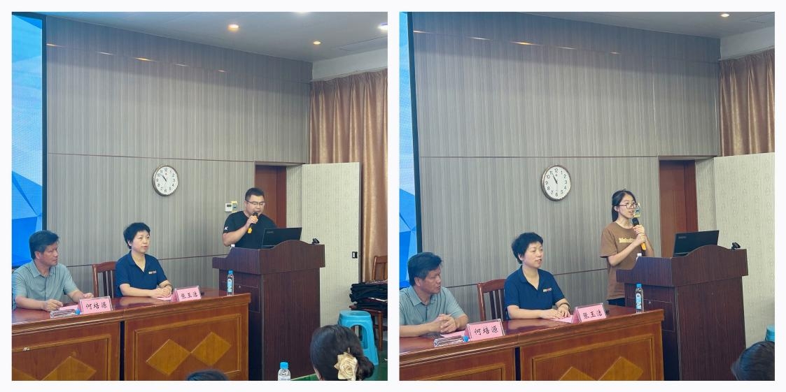 来自融水中学的粟祥兴老师代表培训教师发言,他回顾了本次培训的历程,表示自己受益颇多,在今后的学习和生活中要发挥“活到老学到老”的精神,不断提升自己,将所学运用到实际工作中。融水中学的管其乐同学作为“最佳学员”代表发言,她激动地表示本次大赛的成功离不开队友的合作与支持,短短几天的时间里大家通力合作,共同收获了成功和友谊,留下了一段美好的回忆。