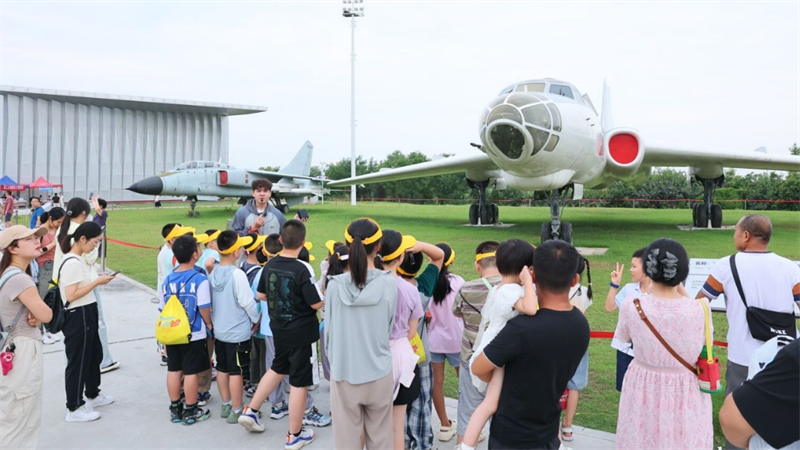 学校东门内的何尊组雕和军工素质教育实践中心户外停机坪是最受关注的两个打卡地。组雕前每日都会排起长队,游客们依次与“勇士”合影,表达对“隐姓埋名、为国铸剑”的敬意。户外停机坪入驻了包括歼-6、轰-6甲、歼轰-7、歼-8、直-5以及“延安一号”轻型飞机、“五八”式地面效应飞行器等多型装备,吸引了不少热爱航空航天的中小学生参观研学。