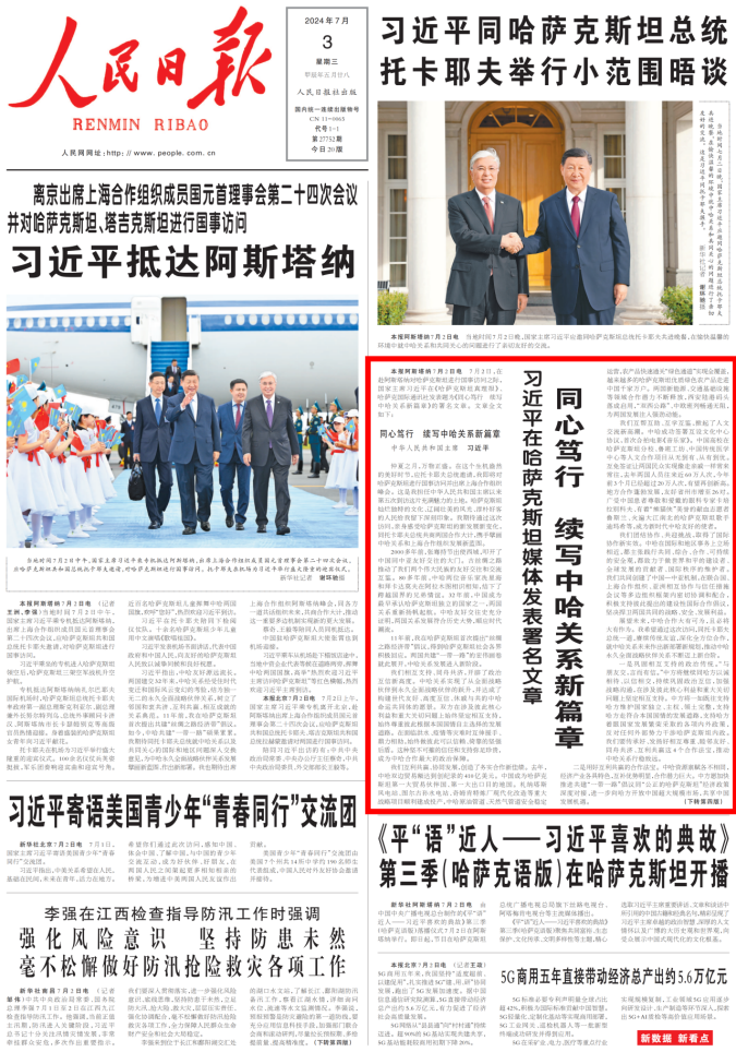 7月2日,习近平总书记在哈萨克斯坦媒体发表题为《同心笃行 续写中哈关系新篇章》的署名文章,文章指出:“中国高校在哈萨克斯坦分校、鲁班工坊、中国传统医学中心等人文合作项目从无到有、从有到优”“共同办好beat365平台官方网站哈萨克斯坦分校,培养更多中哈友好事业接班人”“欢迎两国高校、智库、科研机构开展联合办学、合作科研,支持两国社会各界增进交流,鼓励两国更多地方省州市结好,不断深化教育、旅游、考古、艺术、媒体等领域合作,拓展人文交流的深度和广度”。