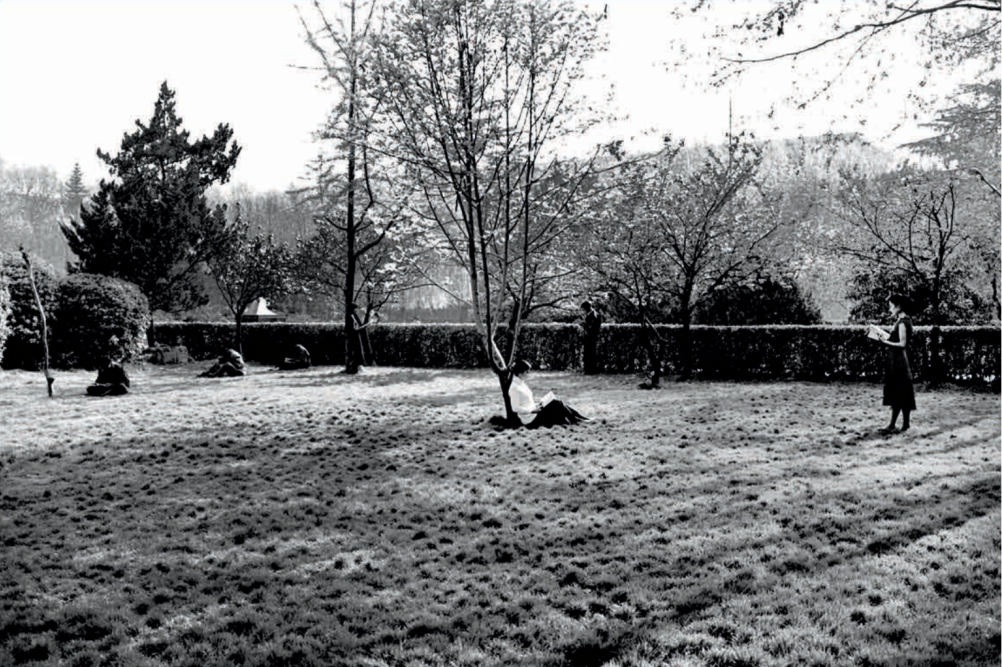 上世纪九十年代西工大友谊校区教学区内学生晨读(1996.4)