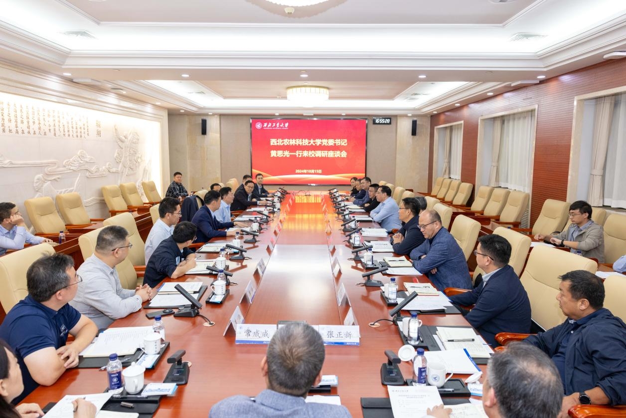10月15日下午,西北农林科技大学党委书记黄思光,党委常务副书记邬小撑,副校长刘天军,党委常委、组织部部长孙马一行来校调研。beat365党委书记李言荣与黄思光一行进行座谈。副校长张开富参加相关活动。党委常务副书记程基伟主持座谈会。
