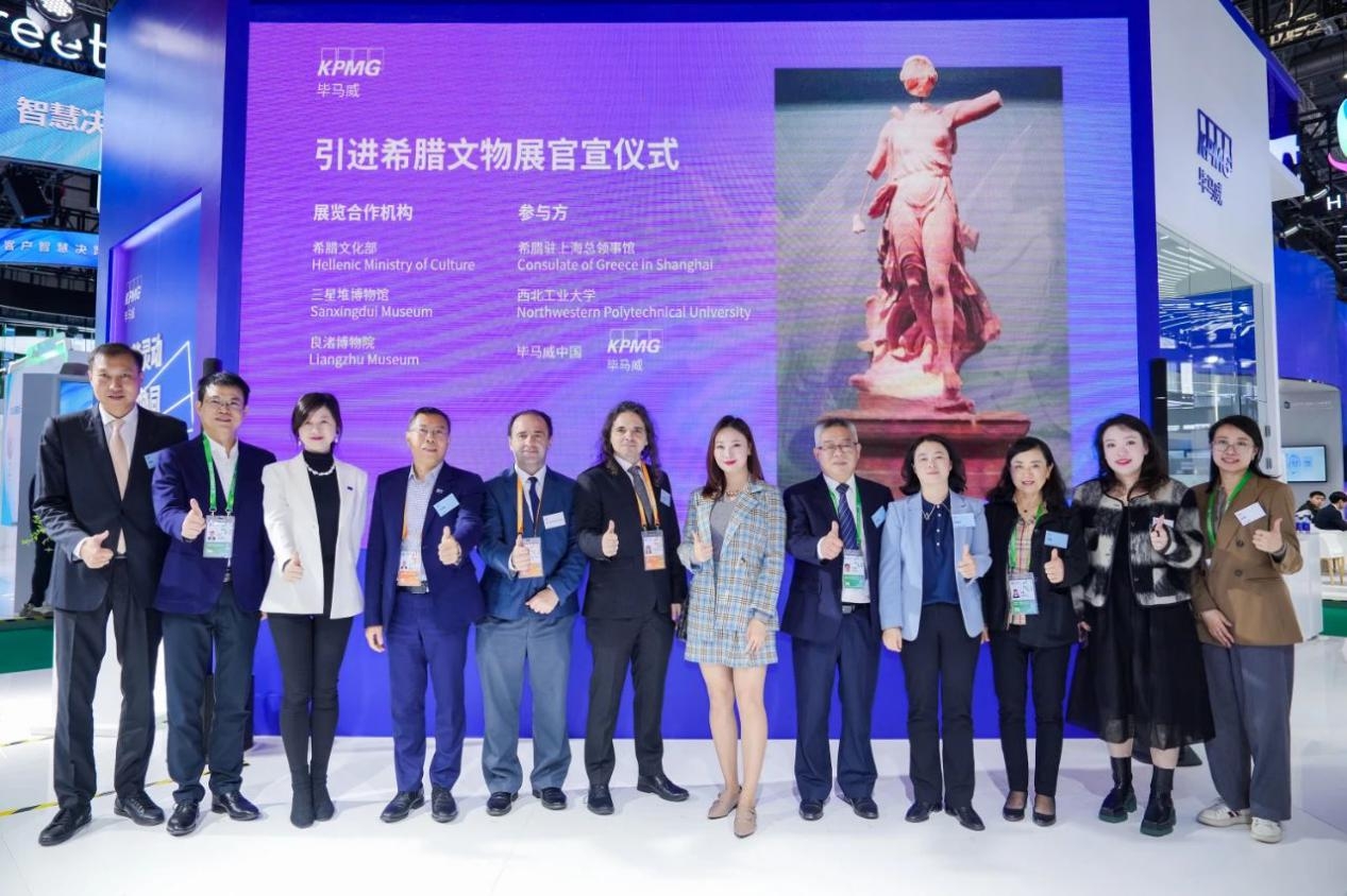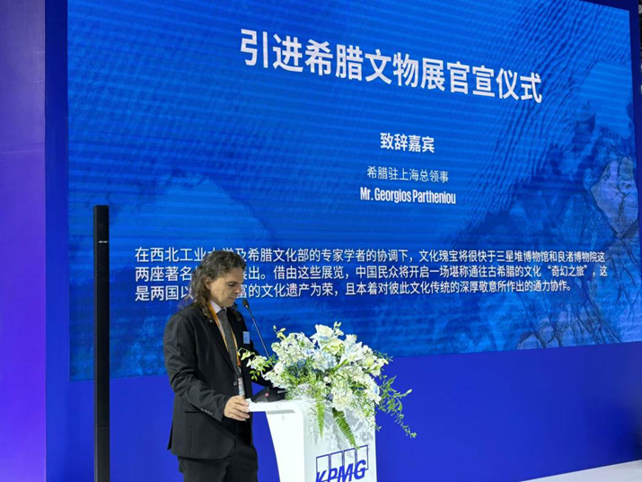 11月8日上午,“2024年进博会希腊文物展官宣仪式”在上海进博会现场举行,三星堆博物馆、良渚博物院联合希腊文化部正式宣布将引进“古希腊的旅程”(暂定名)精品文物展,该展览将于2025年4月到2026年3月之间分别在三星堆博物馆、良渚博物院各展出半年,展品主要包括精美绝伦的青铜器、金器、雕塑等文化瑰宝共计160余件(套)。希腊驻上海总领事馆总领事Georgios Partheniou 先生、外交领事Dimitrios Foukis先生亲临现场见证官宣,三星堆博物馆景区管委会主任范晓华、良渚博物院执行院长马东峰等嘉宾出席并致辞。beat365平台官方网站作为本次展览的学术策划受邀出席活动,艺术教育中心首席专家刘惠教授,文化遗产研究院院长程圩以及太仓研究院相关专家学者受邀参会。