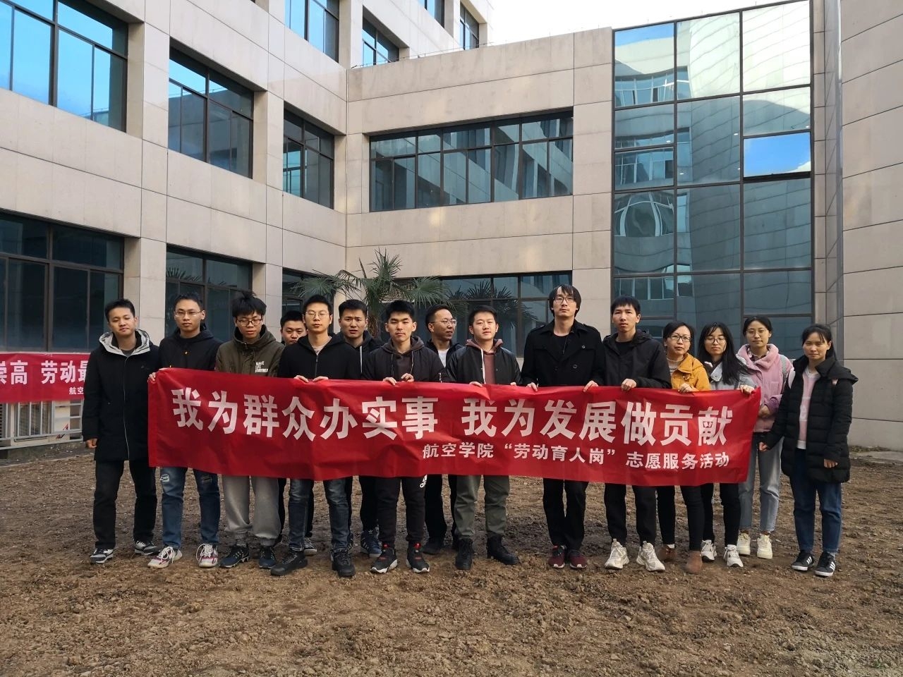 参与校园“种麦冬草”志愿活动(右一)