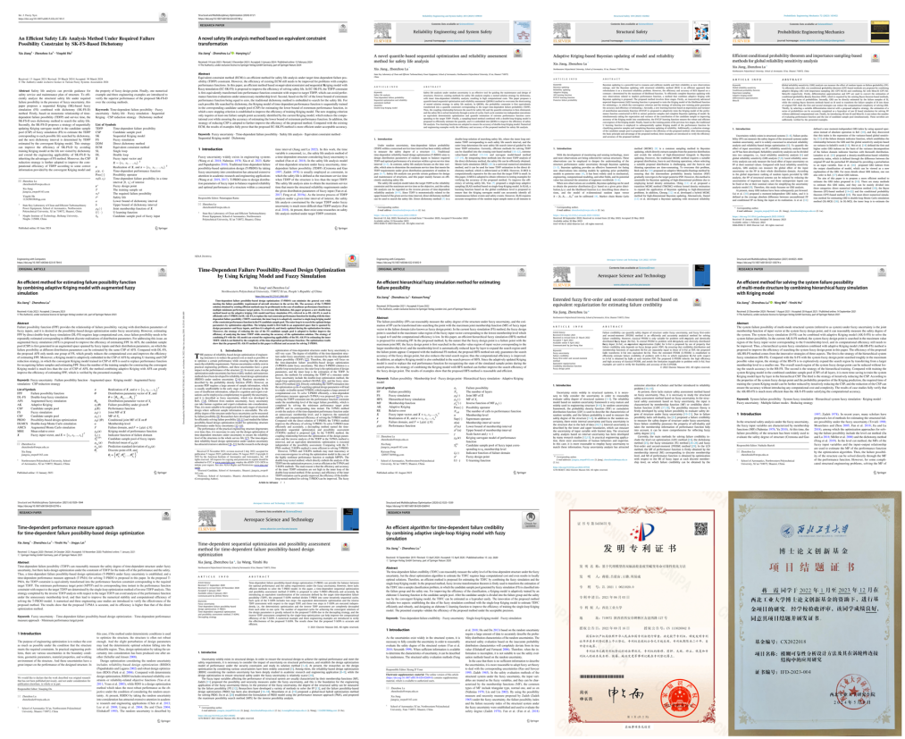 在此后的研究生生涯,她不断提升科研能力,深耕科研主业。2021年,蒋霞通过硕博连读考核,成为了一名博士研究生。在吕老师的悉心指导下,面对“飞行器结构高可靠性要求”的国家重大需求,瞄准研究领域的前沿技术,确定了研究目标为建立一套完整的模糊不确定性分析设计理论体系,即考虑飞行器结构的模糊不确定性来建立可靠性分析模型以及优化设计模型,并研究相应的高效求解方法。博士研究生阶段,她的综合测评中连续三年名列专业前三,并在2022-2023学年综合测评中排名专业第一、年级第一、学院第一。相关成果已以第一作者在《Aerospace Science and Technology》、《Structural Safety》等顶级国际期刊发表SCI论文14篇,合作发表SCI论文8篇,授权发明专利1项。目前,蒋霞受国家留学基金委资助在欧洲风险与可靠性协会主席Michael Beer教授指导下开展联合研究。