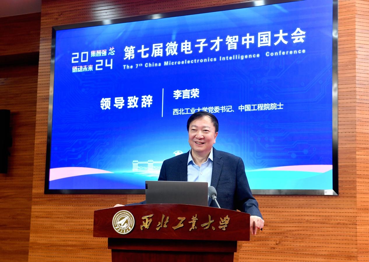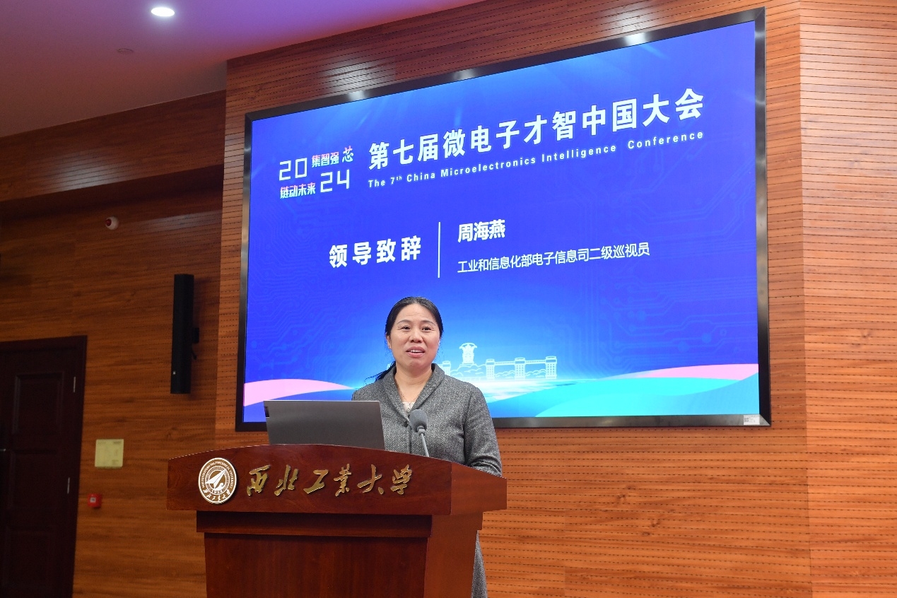 11月27日,第七届微电子才智中国大会在beat365友谊校区举行。校党委书记、中国工程院院士李言荣参加会议开幕式并致辞。工业和信息化部电子信息司二级巡视员周海燕,中国电子信息产业发展研究院党委书记刘文强出席开幕式并讲话。中国电子信息产业发展研究院总工程师李宏伟参加会议。论坛开幕式由副校长张艳宁主持。