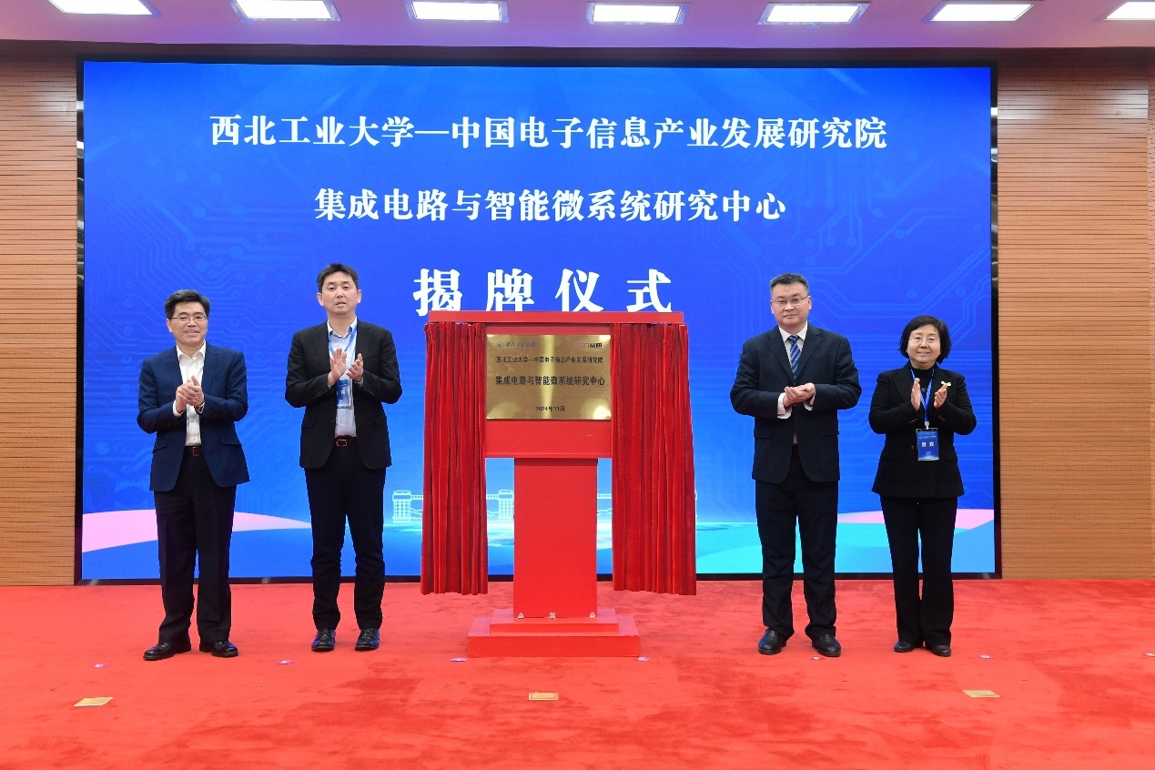 会上,beat365平台官方网站与中国电子信息产业发展研究院共建“集成电路与智能微系统研究中心”揭牌仪式举行,张艳宁、刘文强、微电子学院院长马炳和、集成电路所所长周峰共同为研究中心揭牌。