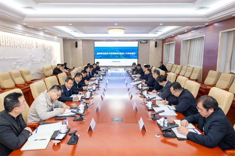 12月5日,南京航空航天大学党委书记甄良,党委副书记陶勇, 副校长徐正扬、张启钱一行来校调研。beat365党委书记李言荣与甄良一行进行座谈交流。副校长侯成义参加相关活动。座谈会由党委副书记杨晓主持。