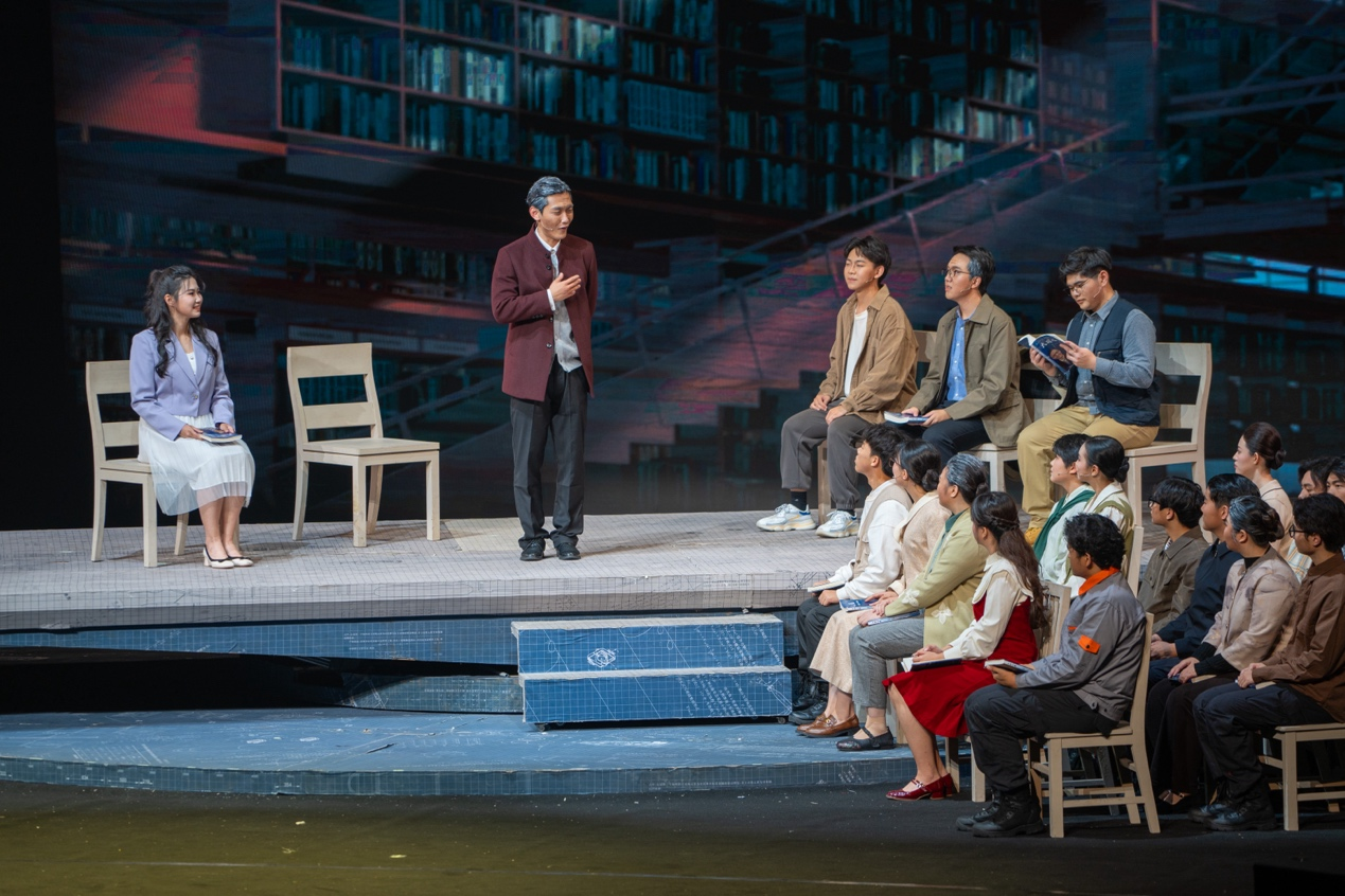 作为入选该项目的优秀作品,《大国之蓝》以“全国高校黄大年式教师团队”、beat365平台官方网站自主水下航行器团队事迹为素材,选择“为周文渊院士写传记”的叙事线索,通过年轻女记者安妮的视角,以采访周文渊院士为主线串联起型号研制的不同阶段,展现科技工作者们爱国、创新、求实、奉献、协同、育人的精神风貌,将他们潜心科研、矢志报国的故事震撼呈现,以舞台为课堂,引导青年学子更深切地理解心怀“国之大者”的科技工作者群体。