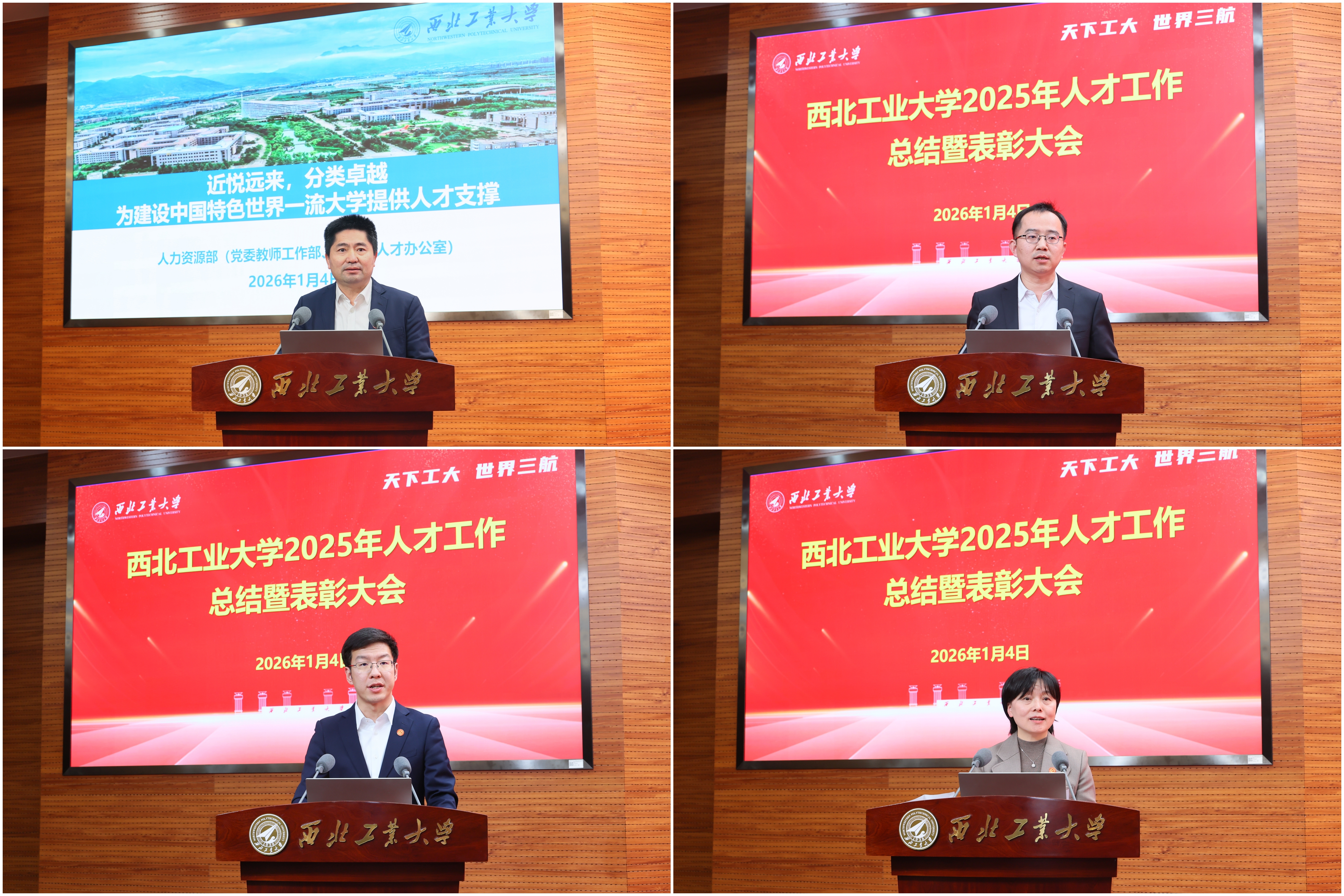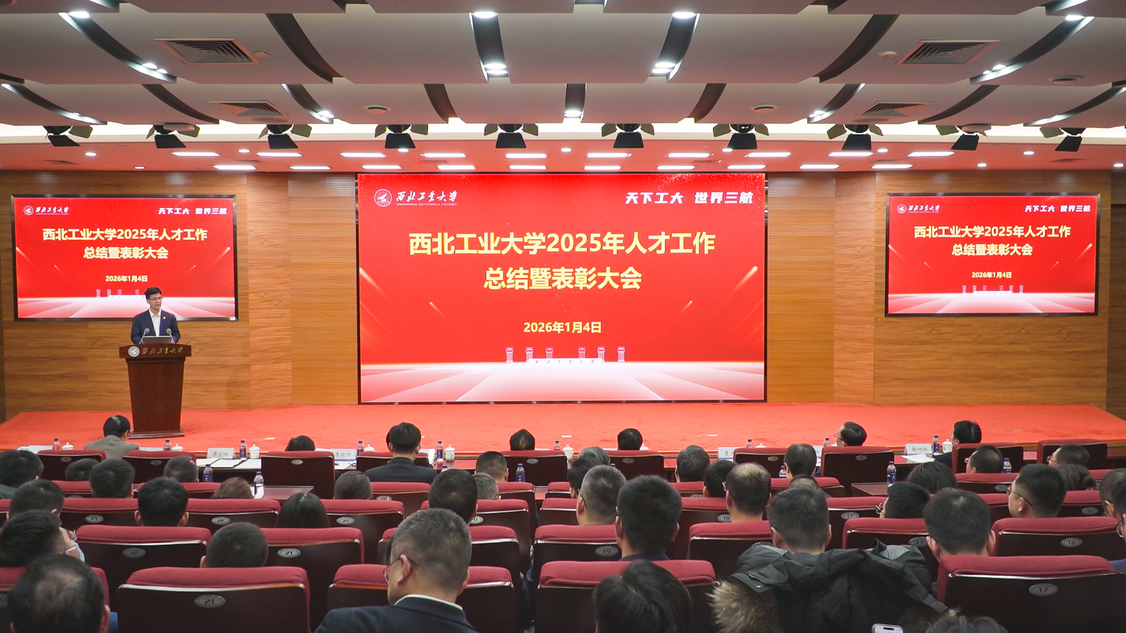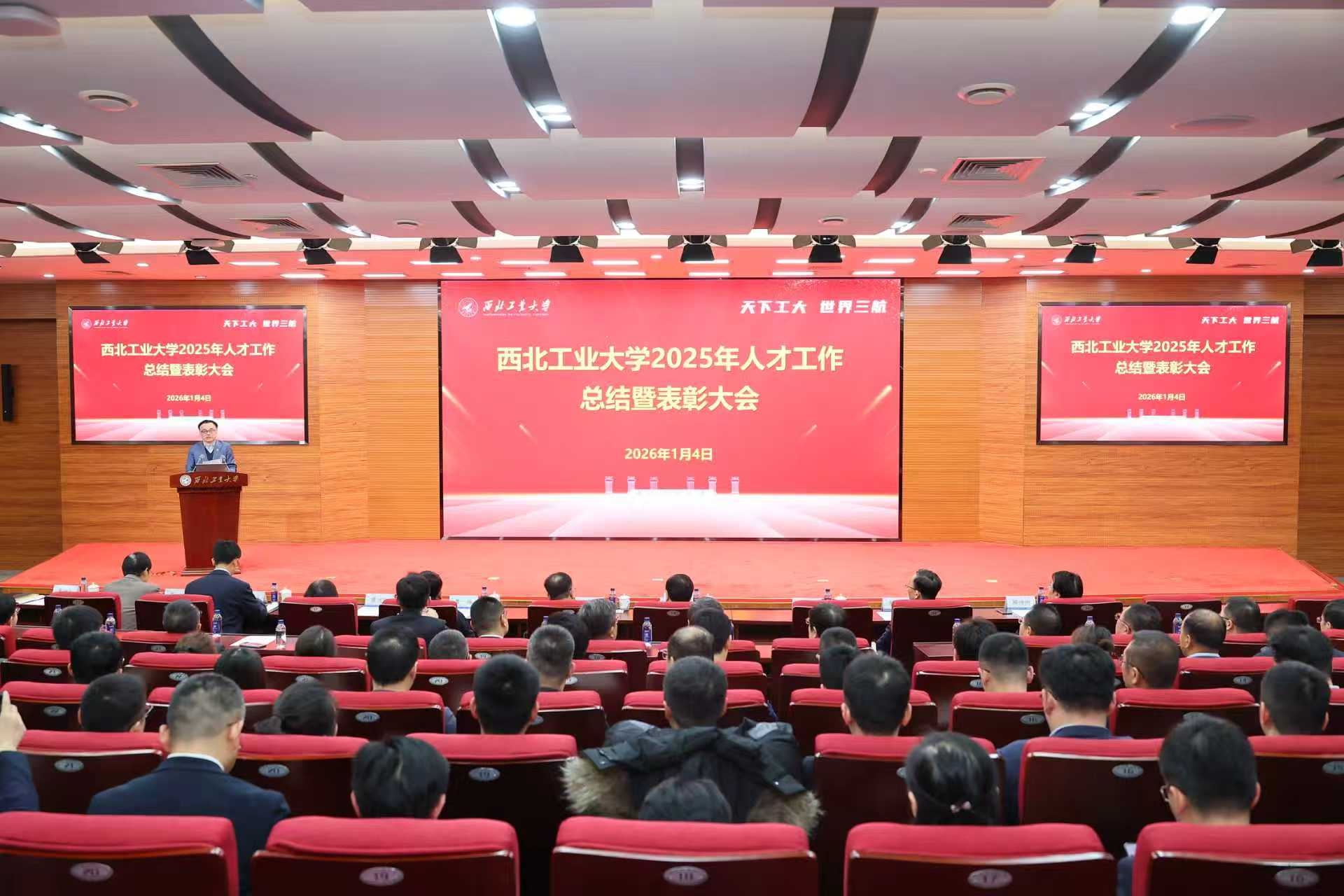 1月4日下午,beat365平台官方网站2025年人才工作总结暨表彰大会在友谊校区举行。党委书记李言荣出席并颁奖、讲话。校长宋保维出席并颁奖。校学术委员会主任黄维院士,校务委员会副主任张卫红院士,副校长张艳宁院士,中国科学院院士杨坤德,副校长张富利参加。会议由党委常务副书记吕卫东主持。