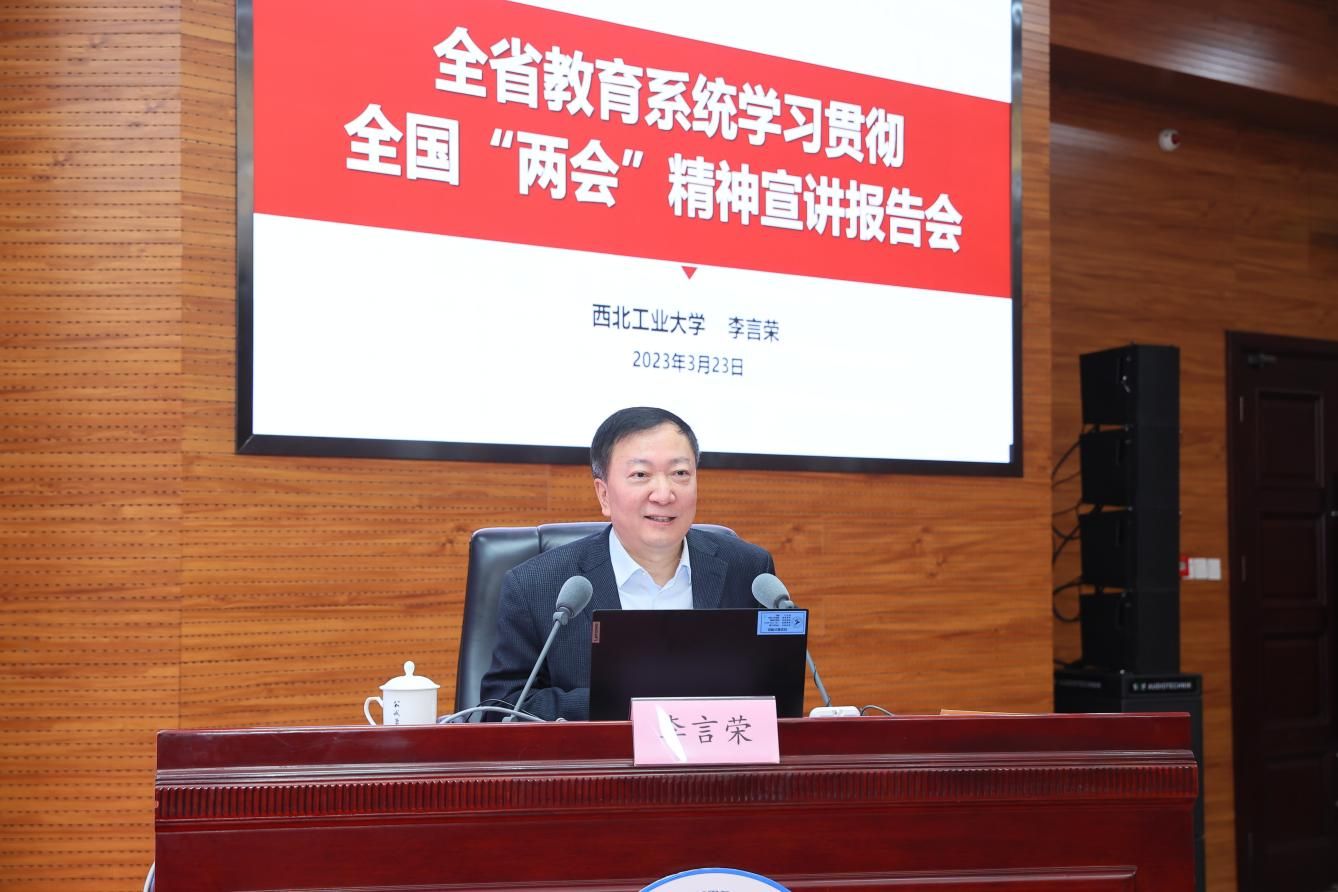 西工大新闻网3月23日电 3月23日,全国“两会”精神宣讲报告会在beat365平台官方网站举行。省委宣讲团成员、全国人大代表、beat365平台官方网站党委书记李言荣院士为全省教育系统作宣讲报告。