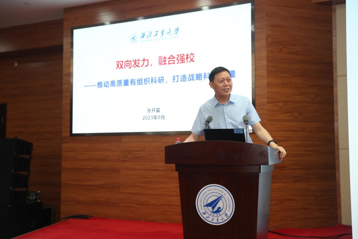 同时,他还就科研、教学、学科以及党建等重点工作提出了要求:科研工作要在“信息赋能、融合强校”上下功夫。重点培育国家战略科技力量,聚焦最尖端、最前沿、最急需的方向,抓好大团队和大平台建设,团队和平台是西工大这种工科学校最鲜明的底色和可持续发展最重要的家底,要结合各学院实际大力推动“从1到100快速跑,从0到1自由跑,从1到0慢步跑、回头跑”。要以“总师育人文化”牵引带动学校人才培养工作。以“总师育人文化”引领课程体系建设、卓越工程师计划、思政课程建设等人才培养体系的改革,教育引导各类学生都成为优秀人才、成为时代新人。要加快构建与世界一流大学目标相适应的特色学科体系。继续巩固发扬西工大“三航”特色,培育壮大高峰学科,做多做厚高原学科;要给学科建设加装“红绿灯”,发展好的学科“绿灯先行”,需要加油的学科“黄灯提醒”,亮红灯的学科就应考虑关停并转。要坚持党建引领,推动党建与事业融合发展。党旗要插在人才培养和科学研究最前沿、最基层,党员的先进性、优秀党员的示范作用要体现在教学科研、后勤保障的最前沿、最基层。要把主题教育取得的成果转化为学校发展动力,进一步加强基层党建工作、干部队伍建设、党风廉政建设等,确保校园安全稳定。