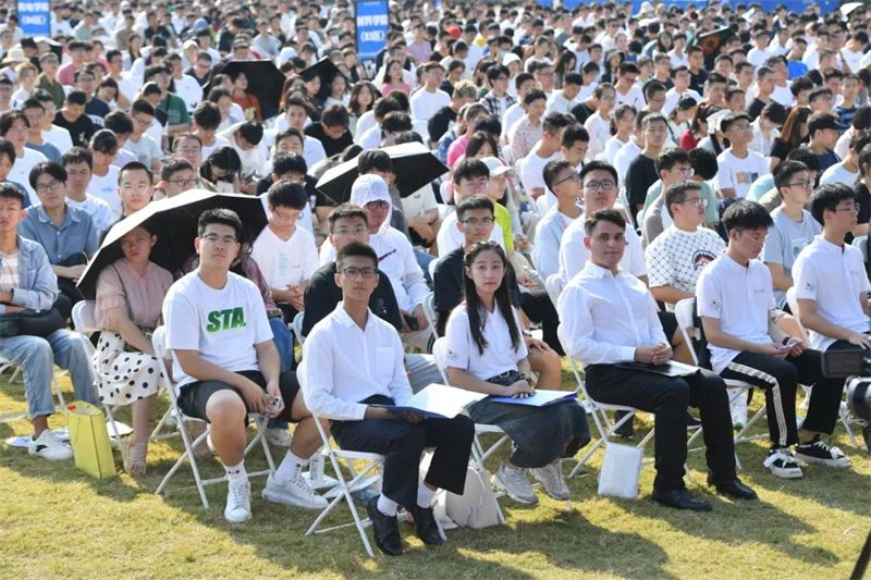 他寄语新同学,作为新时代的中国青年,任重道远,希望大家不负青春理想,不负伟大时代,在“公诚勇毅”“三实一新”的熏陶和涵养下,如优秀的学长一般将人生理想融入国家和民族的事业中,常修常炼、常悟常进,勇做新时代的奋进者、开拓者、奉献者!