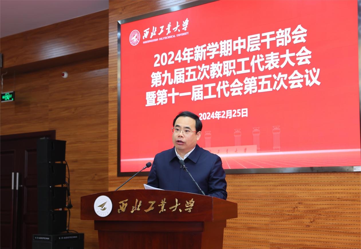 宋保维作题为《继承巩固 创新发展 加快建设中国特色世界一流大学》的工作报告,全面回顾了2023年的工作,并从八个方面二十四项内容对2024年重点工作进行了系统部署。他指出,2023年是全面贯彻党的二十大精神的开局之年,也是学校“双一流”建设追赶超越的重要一年。学校深入学习贯彻习近平新时代中国特色社会主义思想和党的二十大精神,坚持教育科技人才“三位一体”,继承巩固、创新发展,提出并全力落实“127”目标,“总师型”人才培养特色更加突出、科技创新能力显著提高、高层次人才队伍快速壮大、开放办学取得重要成果、机构改革与评价改革深入推进、师生工作学习生活条件明显改善,全校积聚力量形成了一种情怀深厚、蓬勃向上、追求卓越的迸发态势。他表示,成绩来之不易,离不开班子成员的精诚团结和通力协作,更离不开校内各单位和广大师生员工的共同努力,他代表学校对大家的辛勤付出表示衷心的感谢。